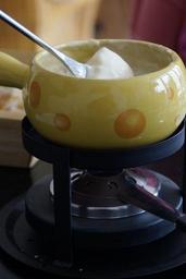 Keywords: fondue switzerland cheese fondue specialty food delicious national dish court eat meal nutrition cheese melt melted swiss stöfchen warmer bread baguette heat cooking at the table frame fork immersion dunk bread pieces