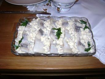 Keywords: Food 001.JPG pl Śledź z sosem tatarskim own Albertyanks Albert Jankowski 2009-12-24 Cuisine of Kashubia and Pomerania Christmas food of Poland Polish Herring Salad Pickled herring