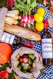 Keywords: food bread wine parsnips radishes turnips lemons pumpkins potatoes brussel sprouts tablecloth leaves eating foot meals ingredients healthy food nutrition green red yellow orange fresh vegetables vegetables lifestyle