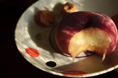 Keywords: food fruit peach plate sweet juicy dessert summer red