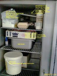 Keywords: Foodinfridgetext.jpg en Demonstration of bad food hygeine in stored foodstuffs in a refrigerator Own Chaosdruid 2009-01-30 Food safety Food storage Domestic refrigerators