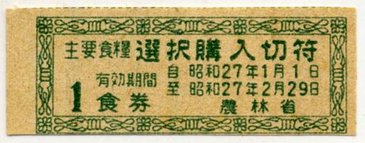 Keywords: Foodstamp.jpg en Japanese food stamp after WWII ja 太平洋戦争終戦後に使われた食糧選択購入切符 称 食券 日 国農林 発給 日 国政 農林 1952-01-01 PD-ineligible PD-Japan-organization Tickets of Japan Ministry of Agriculture Forestry and Fisheries Japan Shōwa era