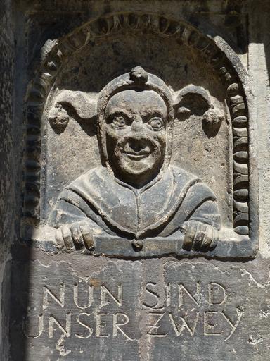 Keywords: fool jester's mirror nördlingen town hall stonemasonry stone figure