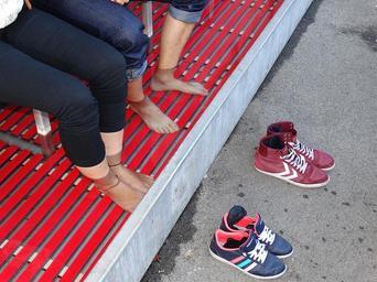 Keywords: foot bath couple together rest enjoy relax shoes regulation