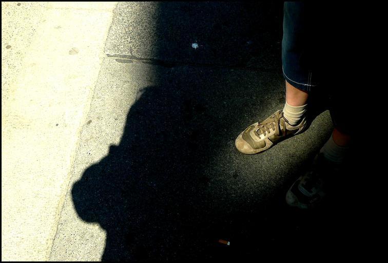 Keywords: foot leg feet sport shoe legs curb sidewalk road pavement lace perspective human person shoe fashion sports shoes sneakers shoe light cone light shadow glow hispanic enter go stand pillar