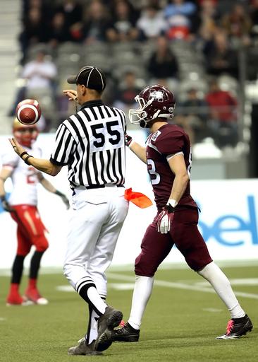 Keywords: football football game referee football referee bobbling ball toss sport field competition play action player football official striped shirt stripes zebra fun active activity athlete football player stadium uniform