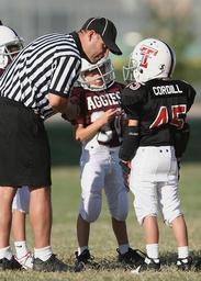 Keywords: football game referee players youth sport man team official stripes uniform whistle young match male boys field conversation support game striped shirt communication connection discussion listening conference athletes participants