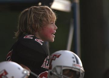 Keywords: football player youth helmet uniform kid young smiling grinning player sports american boys athlete blonde excited excitement headgear hair focused watching texan competitor boy