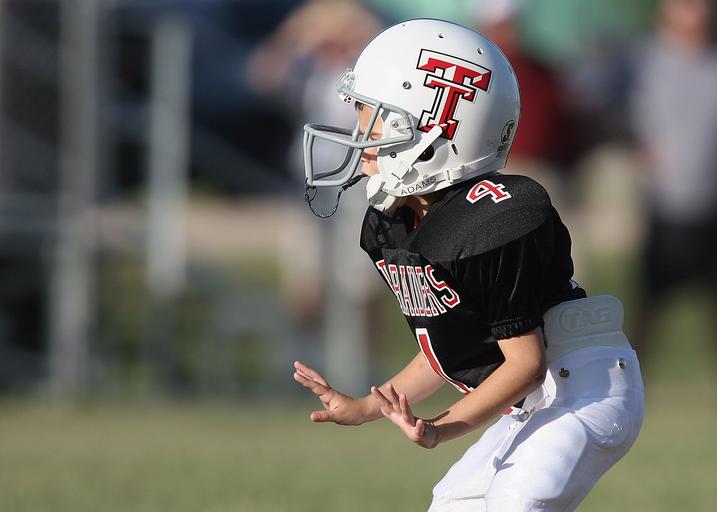 Keywords: football player youth league sport game grass field competition helmet play young athlete action male boy green person texas uniform american