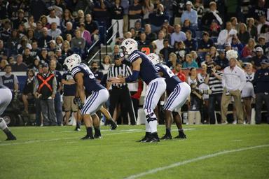 Keywords: football team people game crowd sport american pigskin american football event stadium fan byu utah provo brigham young university college nfl athletics field sports school score ball athlete play men touchdown foot grass tackle high america helmet lineman turf bowl line outdoor usa fans win player teamwork competition victory male league playing uniform goal quarterback