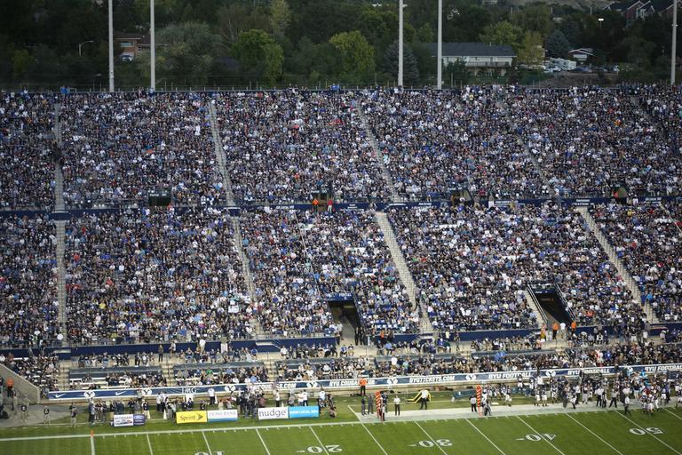 Keywords: football team people game crowd sport american pigskin american football event stadium fan byu utah provo brigham young university college nfl athletics field sports school score ball athlete play men touchdown foot grass tackle high america helmet lineman turf bowl line outdoor usa fans win player teamwork competition victory male league playing uniform goal