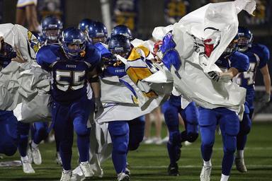 Keywords: football team pre-game ceremonies banner american football teammates uniform athletes athletic male mates young sports competition teamwork friends recognition cheerful active team