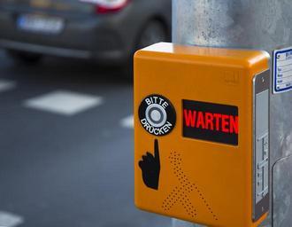 Keywords: footbridge blind signal zebra crossing wait signal wait button auto grey orange wait traffic protection path traffic lights