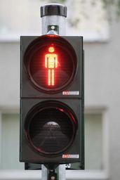 Keywords: footbridge red stop traffic signal little green man traffic lights traffic road sign males pedestrian light signal signal lamp light traffic light signal road beacon stand still