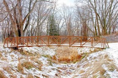 Keywords: footbridge winter snow cold ice season stream scenery landscape nature