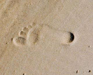 Keywords: footprint sandy beaches brown coastal lands grounds prints human feet foot marks shore walking people single one alone outdoors sunny bright