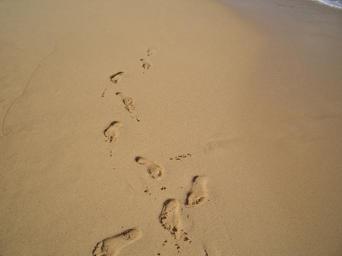 Keywords: footprints sand beach shoreline foot summer walk vacation travel coast footstep barefoot outdoor print coastline path journey track shore seaside trail seashore feet trace mark imprint step sandy shape ground way