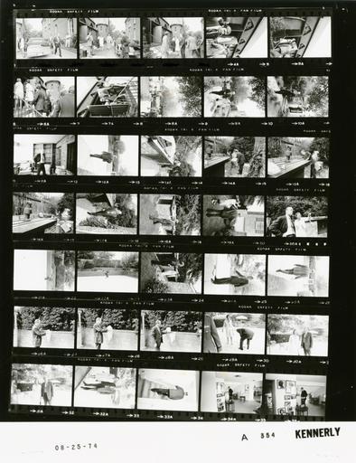 | Keywords: Ford A0354 NLGRF photo contact sheet (1974-08-25)(Gerald Ford Library).jpg White House Photographic Office WHPO is housed at the Gerald R Ford Presidential Library a branch of the National Archives and Records Administration NARA <br/><br/> This file is a 200 dpi photo contact sheet having images from roll of film A0354 of the August 9 1974 - January 20 1977 Gerald R Ford White House Photographic Office Series A0001-A9999 and B0001-B2886 photographs <br/><br/> The date on the photo contact sheet is the date the roll of film was processed not necessarily the date the photographs were taken See table below for additional details 1974-08-25 Gerald R Ford Presidential Library Image http //www fordlibrarymuseum gov/library/whphotos/A0354_NLGRF jpg A0354_NLGRF jpg from http //www fordlibrarymuseum gov/library/whphotos/19740825whpo pdf White House Photographs August 25 1974 of the http //www fordlibrarymuseum gov/Library/whphotos/whpo asp White House Photographic Collection page White House Photographic Office WHPO <br/> Creator David Hume Kennerly PD-USGov Institution Institution Gerald R Ford Presidential Library Table wikitable sortable + Photo contact sheet A0354 U S President Ford Administration Gerald R Ford Library Frame s Tone Subject proper Subject generic Names Geographic Location Photographer Date - 1A-7A BW Religion Episcopal Church - Alexandria Virginia walking into church GRF Betty Ford Secret Service Alexandria VA Immanuel-OnThe-Hill Episcopal Church Kennerly 1974-08-25 - 8A-10A BW 514 Crown View Drive front walk - Alexandria Virginia walking towards front door GRF Betty Ford Secret Service Alexandria VA Ford Home Kennerly 1974-08-25 - 11A BW 514 Crown View Drive family room - Alexandria Virginia looking at items GRF Alexandria VA Ford Home Kennerly 1974-08-25 - 12A-17A BW 514 Crown View Drive backyard - Alexandria Virginia tending to swimming pool GRF Alexandria VA Ford Home Kennerly 1974-08-25 - 19A-20A BW 514 Crown View Drive backyard - Alexandria Virginia looking at back of house GRF Betty Ford Alexandria VA Ford Home Kennerly 1974-08-25 - 21A-22A BW 514 Crown View Drive backyard - Alexandria Virginia tending to swimming pool GRF Alexandria VA Ford Home Kennerly 1974-08-25 - 23A BW 514 Crown View Drive backyard - Alexandria Virginia looking at back of house GRF Betty Ford Alexandria VA Ford Home Kennerly 1974-08-25 - 24A-29A BW 514 Crown View Drive backyard - Alexandria Virginia tending to swimming pool GRF Alexandria VA Ford Home Kennerly 1974-08-25 - 30A-32A BW 514 Crown View Drive backyard - Alexandria Virginia looking at back of house GRF Betty Ford Alexandria VA Ford Home Kennerly 1974-08-25 - 33A BW 514 Crown View Drive stairway -Alexandria Virginia walking up steps GRF Alexandria VA Ford Home Kennerly 1974-08-25 - 34A-35A BW 514 Crown View Drive master bedroom - Alexandria Virginia looking at photos on wall GRF Alexandria VA Ford Home Kennerly 1974-08-25 Gerald R Ford Presidential Library and Museum-cooperation PD-USGov Contact sheets by the Ford White House August 1974 Photographs by David Hume Kennerly from 1974 |