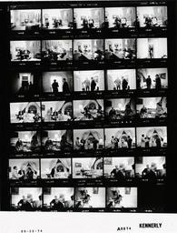 | Keywords: Ford A0574 NLGRF photo contact sheet (1974-09-05)(Gerald Ford Library).jpg White House Photographic Office WHPO is housed at the Gerald R Ford Presidential Library a branch of the National Archives and Records Administration NARA <br/><br/> This file is a 200 dpi photo contact sheet having images from roll of film A0574 of the August 9 1974 - January 20 1977 Gerald R Ford White House Photographic Office Series A0001-A9999 and B0001-B2886 photographs <br/><br/> The date on the photo contact sheet is the date the roll of film was processed not necessarily the date the photographs were taken See table below for additional details 1974-09-05 Gerald R Ford Presidential Library Image http //www fordlibrarymuseum gov/library/whphotos/A0574_NLGRF jpg A0574_NLGRF jpg from http //www fordlibrarymuseum gov/library/whphotos/19740905whpo pdf White House Photographs September 5 1974 of the http //www fordlibrarymuseum gov/Library/whphotos/whpo asp White House Photographic Collection page White House Photographic Office WHPO <br/> Creator David Hume Kennerly PD-USGov Institution Institution Gerald R Ford Presidential Library Table wikitable sortable + Photo contact sheet A0574 U S President Ford Administration Gerald R Ford Library Frame s Tone Subject proper Subject generic Names Geographic Location Photographer Date - 2A BW standing by desk reading GRF Oval Office Kennerly 1974-09-05 - 3A-5A BW Special Consultant to the President standing by desk reading newspaper GRF Scranton Oval Office Kennerly 1974-09-05 - 6A BW Special Consultant to the President standing by desk reading newspaper laughing GRF Scranton Oval Office Kennerly 1974-09-05 - 7A BW Special Consultant to the President standing by desk reading newspaper GRF Scranton Oval Office Kennerly 1974-09-05 - 8A-10A BW Special Consultant to the President seated around desk GRF Scranton Oval Office Kennerly 1974-09-05 - 11A BW Special Consultant to the President leaving Oval Office Scranton Scheduling and Advance Office Kennerly 1974-09-05 - 12A BW dark backs to camera; walking to White House GRF Others Colonnade Kennerly 1974-09-05 - 13A BW President's Personal Physician walking backs to camera GRF Lukash Doctor's Office Kennerly 1974-09-05 - 14A-15A BW standing talking GRF Lukash Doctor's Office Kennerly 1974-09-05 - 16A BW standing talking GRF Two Unidentified Men Second Floor - West Sitting Hall Kennerly 1974-09-05 - 17A BW seated on couch; GRF seated on arm GRF Betty Ford Unidentified Man Second Floor - West Sitting Hall Kennerly 1974-09-05 - 18A BW Betty seated; GRF seated on arm; man standing GRF Betty Ford Unidentified Man Second Floor - West Sitting Hall Kennerly 1974-09-05 - 19A BW seated on couch; GRF seated on arm GRF Betty Ford Unidentified Man Second Floor - West Sitting Hall Kennerly 1974-09-05 - 20A-23A BW seated talking laughing GRF Betty Ford Second Floor - West Sitting Hall Kennerly 1974-09-05 - 24A-26A BW standing talking laughing GRF Betty Ford Two Unidentified Men Second Floor - West Sitting Hall Kennerly 1974-09-05 - 27A BW standing talking GRF Two Unidentified Men Second Floor - West Sitting Hall Kennerly 1974-09-05 - 28A BW GRF standing; Betty seated holding paper GRF Betty Ford Second Floor - West Sitting Hall Kennerly 1974-09-05 - 29A BW seated; GRF reading newspaper GRF Betty Ford Second Floor - West Sitting Hall Kennerly 1974-09-05 - 30A-33A BW seated reading newspaper GRF Second Floor - West Sitting Hall Kennerly 1974-09-05 - 34A-35A BW seated reading newspaper - long shot GRF Second Floor - West Sitting Hall Kennerly 1974-09-05 Gerald R Ford Presidential Library and Museum-cooperation PD-USGov Contact sheets by the Ford White House September 1974 Photographs by David Hume Kennerly from 1974 |