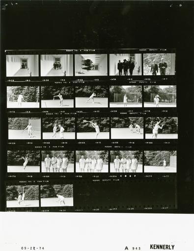 | Keywords: Ford A0943 NLGRF photo contact sheet (1974-09-21)(Gerald Ford Library).jpg White House Photographic Office WHPO is housed at the Gerald R Ford Presidential Library a branch of the National Archives and Records Administration NARA <br/><br/> This file is a 200 dpi photo contact sheet having images from roll of film A0943 of the August 9 1974 - January 20 1977 Gerald R Ford White House Photographic Office Series A0001-A9999 and B0001-B2886 photographs <br/><br/> The date on the photo contact sheet is the date the roll of film was processed not necessarily the date the photographs were taken See table below for additional details 1974-09-21 Gerald R Ford Presidential Library Image http //www fordlibrarymuseum gov/library/whphotos/A0943_NLGRF jpg A0943_NLGRF jpg from http //www fordlibrarymuseum gov/library/whphotos/19740921whpo pdf White House Photographs September 21 1974 of the http //www fordlibrarymuseum gov/Library/whphotos/whpo asp White House Photographic Collection page White House Photographic Office WHPO <br/> Creator David Hume Kennerly PD-USGov Institution Institution Gerald R Ford Presidential Library Table wikitable sortable + Photo contact sheet A0943 U S President Ford Administration Gerald R Ford Library Frame s Tone Subject proper Subject generic Names Geographic Location Photographer Date - 3-6 BW Soviet Foreign Minister; Ambassador of Union of Soviet Socialist Republics USSR to United States walking toward Cabinet Room Andrei Gromyko Ambassador Anatoly Dobrynin Ambassador Henry Catto Victor Sukhrodev Others Colonnade Kennerly 1974-09-21 - 7 BW Following Departure of Soviet Foreign Minister talking walking back to Oval Office; Keiser in background GRF Scowcroft Keiser Walkway between Oval Office and Driveway Kennerly 1974-09-21 - 19-21 BW Tennis Match between Haig Bush Rustand and Unidentified Man posing during break Haig Bush Unidentified Man Rustand White House Tennis Court Kennerly 1974-09-22 - 22-24 BW Tennis Match between Haig Bush Rustand and Unidentified Man returning various shots; man in 23n only Bush Unidentified Man White House Tennis Court Kennerly 1974-09-22 - 9-10 BW Tennis Match between Haig Bush Rustand and Unidentified Man returning various shots Haig White House Tennis Court Kennerly 1974-09-22 - 13 BW Tennis Match between Haig Bush Rustand and Unidentified Man returning various shots Rustand White House Tennis Court Kennerly 1974-09-22 - 14 BW Tennis Match between Haig Bush Rustand and Unidentified Man waiting for ball return Rustand Haig White House Tennis Court Kennerly 1974-09-22 - 15 BW Tennis Match between Haig Bush Rustand and Unidentified Man serving Haig White House Tennis Court Kennerly 1974-09-22 - 16-17 BW Tennis Match between Haig Bush Rustand and Unidentified Man returning various shots Rustand Haig White House Tennis Court Kennerly 1974-09-22 - 18 BW Tennis Match between Haig Bush Rustand and Unidentified Man returning shot Haig White House Tennis Court Kennerly 1974-09-22 - 8 BW Tennis Match between Haig Bush Rustand and Unidentified Man returning shot; back to camera Bush White House Tennis Court Kennerly 1974-09-22 - 11-12 BW Tennis Match between Haig Bush Rustand and Unidentified Man serving flipping racquet Unidentified Man White House Tennis Court Kennerly 1974-09-22 Gerald R Ford Presidential Library and Museum-cooperation PD-USGov Contact sheets by the Ford White House September 1974 Photographs by David Hume Kennerly from 1974 |