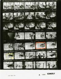 | Keywords: Ford A1222 NLGRF photo contact sheet (1974-10-05)(Gerald Ford Library).jpg White House Photographic Office WHPO is housed at the Gerald R Ford Presidential Library a branch of the National Archives and Records Administration NARA <br/><br/> This file is a 200 dpi photo contact sheet having images from roll of film A1222 of the August 9 1974 - January 20 1977 Gerald R Ford White House Photographic Office Series A0001-A9999 and B0001-B2886 photographs <br/><br/> The date on the photo contact sheet is the date the roll of film was processed not necessarily the date the photographs were taken See table below for additional details 1974-10-05 Gerald R Ford Presidential Library Image http //www fordlibrarymuseum gov/library/whphotos/A1222_NLGRF jpg A1222_NLGRF jpg from http //www fordlibrarymuseum gov/library/whphotos/19741005whpo pdf White House Photographs October 5 1974 of the http //www fordlibrarymuseum gov/Library/whphotos/whpo asp White House Photographic Collection page White House Photographic Office WHPO <br/> Creator David Hume Kennerly PD-USGov Institution Institution Gerald R Ford Presidential Library Table wikitable sortable + Photo contact sheet A1222 U S President Ford Administration Gerald R Ford Library Frame s Tone Subject proper Subject generic Names Geographic Location Photographer Date - 3-5 BW seated around desk talking GRF Kissinger Sec Simon Seidman Oval Office Kennerly 1974-10-05 - 6-11 BW Meeting with Grain Company Executives seated around table; discussing grain sales to U S S R ; various angles and distances; all not in every frame GRF Secs Simon Butz; Michael Firbourg Clarence Palmby Bernard Steinweg Edward Cook Willard Sparks Herbert Wesley McAden Seidman William Eberle Clayton Yeutter Roosevelt Room Kennerly 1974-10-05 - 12-17 BW Trip to visit Mrs Ford following Cancer Surgery - Bethesda Maryland BF lying in hospital bed; others seated next to bed GRF Betty Ford Bob Hope Unidentified Man possibly John Byrnes Bethesda MD Bethesda Naval Hospital - President's Suite Kennerly 1974-10-05 - 18 BW Kennerly 1974-10-05 - 19-22 BW Prior to Reception for Washington Diplomatic Corps standing talking embracing; formal wear GRF Susan Ford Second Floor - Center Hall Kennerly 1974-10-05 - 23 BW Prior to Reception for Washington Diplomatic Corps walking towards Yellow Oval Room - profile; formal wear Susan Ford Second Floor - Center Hall Kennerly 1974-10-05 - 24-33 BW Prior to Reception for Washington Diplomatic Corps standing talking; formal wear GRF Susan Ford Second Floor - Yellow Oval Room Kennerly 1974-10-05 - 34-36 BW Prior to Reception for Washington Diplomatic Corps seated; Todd giving briefing on entrance ceremony taken from Center Hall; formal wear GRF Susan Ford Todd Second Floor - Yellow Oval Room Kennerly 1974-10-05 - 37 BW Prior to Reception for Washington Diplomatic Corps seated; Todd giving briefing on entrance ceremony; formal wear GRF Susan Ford Todd Second Floor - Yellow Oval Room Kennerly 1974-10-05 Gerald R Ford Presidential Library and Museum-cooperation PD-USGov Contact sheets by the Ford White House October 1974 Photographs by David Hume Kennerly from 1974 |