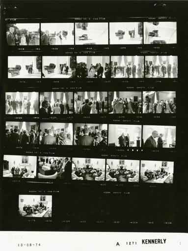 | Keywords: Ford A1271 NLGRF photo contact sheet (1974-10-08)(Gerald Ford Library).jpg White House Photographic Office WHPO is housed at the Gerald R Ford Presidential Library a branch of the National Archives and Records Administration NARA <br/><br/> This file is a 200 dpi photo contact sheet having images from roll of film A1271 of the August 9 1974 - January 20 1977 Gerald R Ford White House Photographic Office Series A0001-A9999 and B0001-B2886 photographs <br/><br/> The date on the photo contact sheet is the date the roll of film was processed not necessarily the date the photographs were taken See table below for additional details 1974-10-08 Gerald R Ford Presidential Library Image http //www fordlibrarymuseum gov/library/whphotos/A1271_NLGRF jpg A1271_NLGRF jpg from http //www fordlibrarymuseum gov/library/whphotos/19741008whpo pdf White House Photographs October 8 1974 of the http //www fordlibrarymuseum gov/Library/whphotos/whpo asp White House Photographic Collection page White House Photographic Office WHPO <br/> Creator David Hume Kennerly PD-USGov Institution Institution Gerald R Ford Presidential Library Table wikitable sortable + Photo contact sheet A1271 U S President Ford Administration Gerald R Ford Library Frame s Tone Subject proper Subject generic Names Geographic Location Photographer Date - 2A BW State Arrival of First Secretary Polish United Workers Party; Leader of Poland walking up steps GRF Edward Stanislawa Gierek Barrett Blue Room Balcony Kennerly 1974-10-08 - 3A BW State Arrival of First Secretary Polish United Workers Party; Leader of Poland walking toward railing GRF Edward Stanislawa Gierek Blue Room Balcony Kennerly 1974-10-08 - 4A-7A BW State Arrival of First Secretary Polish United Workers Party; Leader of Poland waving to crowd on South Lawn; taken from left and behind group GRF Edward Stanislawa Gierek Blue Room Balcony Kennerly 1974-10-08 - 8A-9A BW State Arrival of First Secretary Polish United Workers Party; Leader of Poland walking towards Blue Room door GRF Edward Stanislawa Gierek Blue Room Balcony Kennerly 1974-10-08 - 10A-14A BW First Secretary Polish United Workers Party; Leader of Poland greeting handshaking in receiving line - all not in every frame GRF Edward Stanislawa Gierek Kissinger Gen Mrs Weyand Others Blue Room Kennerly 1974-10-08 - 15A-16A BW First Secretary Polish United Workers Party; Leader of Poland standing talking GRF Edward Gierek Henryk Sokalski Interpreter Blue Room Kennerly 1974-10-08 - 17A-19A BW First Secretary Polish United Workers Party; Leader of Poland talking mingling - all not in every frame GRF Edward Stanislawa Gierek Kissinger Others Blue Room Kennerly 1974-10-08 - 20A-21A BW First Secretary Polish United Workers Party; Leader of Poland walking through door from Colonnade GRF Edward Gierek Oval Office Kennerly 1974-10-08 - 22A BW First Secretary Polish United Workers Party; Leader of Poland seated near fireplace interpreter standing GRF Edward Gierek Henryk Sokalski Interpreter Oval Office Kennerly 1974-10-08 - 23A BW First Secretary Polish United Workers Party; Leader of Poland seated near fireplace interpreter standing - media in background GRF Edward Gierek Henryk Sokalski Interpreter Media Oval Office Kennerly 1974-10-08 - 24A-27A BW First Secretary Polish United Workers Party; Leader of Poland seated near fireplace interpreter standing GRF Edward Gierek Mieczyslaw Jagielski Stephan Olszowska Kissinger Scowcroft Henryk Sokalski Interpreter Oval Office Kennerly 1974-10-08 Gerald R Ford Presidential Library and Museum-cooperation PD-USGov Contact sheets by the Ford White House October 1974 Photographs by David Hume Kennerly from 1974 |