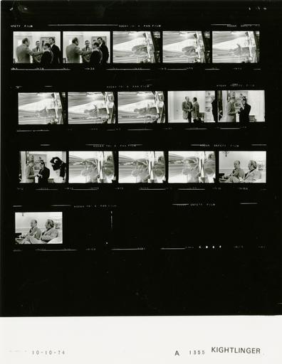| Keywords: Ford A1355 NLGRF photo contact sheet (1974-10-10)(Gerald Ford Library).jpg White House Photographic Office WHPO is housed at the Gerald R Ford Presidential Library a branch of the National Archives and Records Administration NARA <br/><br/> This file is a 200 dpi photo contact sheet having images from roll of film A1355 of the August 9 1974 - January 20 1977 Gerald R Ford White House Photographic Office Series A0001-A9999 and B0001-B2886 photographs <br/><br/> The date on the photo contact sheet is the date the roll of film was processed not necessarily the date the photographs were taken See table below for additional details 1974-10-10 Gerald R Ford Presidential Library Image http //www fordlibrarymuseum gov/library/whphotos/A1355_NLGRF jpg A1355_NLGRF jpg from http //www fordlibrarymuseum gov/library/whphotos/19741010whpo pdf White House Photographs October 10 1974 of the http //www fordlibrarymuseum gov/Library/whphotos/whpo asp White House Photographic Collection page White House Photographic Office WHPO - Kightlinger PD-USGov Institution Institution Gerald R Ford Presidential Library Table wikitable sortable + Photo contact sheet A1355 U S President Ford Administration Gerald R Ford Library Frame s Tone Subject proper Subject generic Names Geographic Location Photographer Date - 2A-3A BW United States Representative from Tennessee TN - Re Presentation of Commemorative copy of the Holy Bible standing in center of room talking GRF Rep LaMar Baker Michael Anglin Philip Morrison Garth Black Friedersdorf Korologos Oval Office Kightlinger 1974-10-10 - 4A-5A BW leaning over desk reading document GRF Oval Office Kightlinger 1974-10-10 - 6A-9A BW standing near desk reading document GRF Oval Office Kightlinger 1974-10-10 - 10A BW United States Representative from Florida FL - Re Why I Love America program greeting handshaking GRF Rep Chappell Oval Office Kightlinger 1974-10-10 - 11A-12A BW United States Representative from New Jersey NJ - Re Presentation of hand carved pipe to GRF standing presenting pipe - Hunt wearing Moslem fez GRF Rep Hunt Oval Office Kightlinger 1974-10-10 - 13A-15A BW seated at desk smoking pipe - left side profile GRF Oval Office Kightlinger 1974-10-10 - 16A-17A BW United States Representative from Illinois IL seated near fireplace GRF Rep Erlenborn Oval Office Kightlinger 1974-10-10 Gerald R Ford Presidential Library and Museum-cooperation PD-USGov Contact sheets by the Ford White House October 1974 |