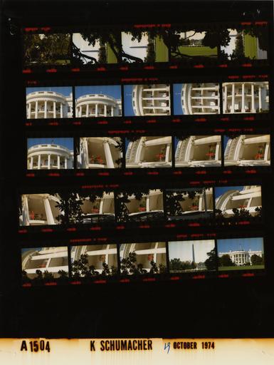 | Keywords: Ford A1504 NLGRF photo contact sheet (1974-10-19)(Gerald Ford Library).jpg White House Photographic Office WHPO is housed at the Gerald R Ford Presidential Library a branch of the National Archives and Records Administration NARA <br/><br/> This file is a 200 dpi photo contact sheet having images from roll of film A1504 of the August 9 1974 - January 20 1977 Gerald R Ford White House Photographic Office Series A0001-A9999 and B0001-B2886 photographs <br/><br/> The date on the photo contact sheet is the date the roll of film was processed not necessarily the date the photographs were taken See table below for additional details 1974-10-19 Gerald R Ford Presidential Library Image http //www fordlibrarymuseum gov/library/whphotos/A1504_NLGRF jpg A1504_NLGRF jpg from http //www fordlibrarymuseum gov/library/whphotos/19741019whpo pdf White House Photographs October 19 1974 of the http //www fordlibrarymuseum gov/Library/whphotos/whpo asp White House Photographic Collection page White House Photographic Office WHPO - Schumacher PD-USGov Institution Institution Gerald R Ford Presidential Library Table wikitable sortable + Photo contact sheet A1504 U S President Ford Administration Gerald R Ford Library Frame s Tone Subject proper Subject generic Names Geographic Location Photographer Date - 2A Color walking taking photographs Tour Group Rose Garden Schumacher 1974-10-19 - 3A-6A Color walking near fountain; Washington Monument in background Tour Group South Lawn Schumacher 1974-10-19 - 7A-12A Color standing waving from Truman Balcony - taken from South Lawn Betty Ford Truman Balcony/Blue Room Balcony Schumacher 1974-10-19 - 13A Color standing waving red dress - taken from South Lawn Betty Ford Howe Truman Balcony Schumacher 1974-10-19 - 14A-22A Color standing waving - taken from South Lawn Betty Ford Truman Balcony Schumacher 1974-10-19 - 23A Color standing waving - taken from South Lawn Betty Ford Howe Truman Balcony Schumacher 1974-10-19 - 24A Color standing waving - taken from South Lawn Betty Ford Howe Truman Balcony Schumacher 1974-10-19 - 25A Color walking near fountain; Washington Monument in background Tour Group South Lawn Schumacher 1974-10-19 - 26A Color The White House standing on South Portico Balcony -extreme long shot with entire Mansion Unidentified Group South Lawn Schumacher 1974-10-19 Gerald R Ford Presidential Library and Museum-cooperation PD-USGov Contact sheets by the Ford White House October 1974 |