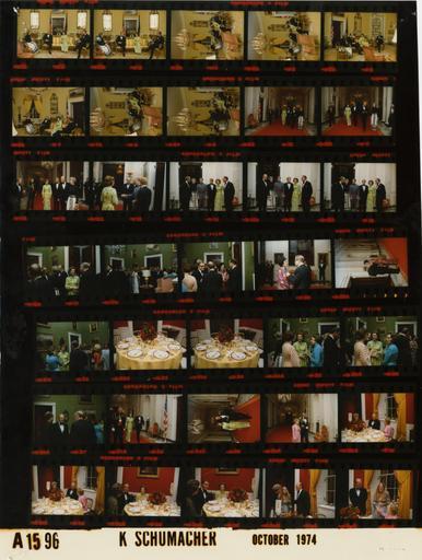 | Keywords: Ford A1596 NLGRF photo contact sheet (1974-10-23)(Gerald Ford Library).jpg White House Photographic Office WHPO is housed at the Gerald R Ford Presidential Library a branch of the National Archives and Records Administration NARA <br/><br/> This file is a 200 dpi photo contact sheet having images from roll of film A1596 of the August 9 1974 - January 20 1977 Gerald R Ford White House Photographic Office Series A0001-A9999 and B0001-B2886 photographs <br/><br/> The date on the photo contact sheet is the date the roll of film was processed not necessarily the date the photographs were taken See table below for additional details 1974-10-23 Gerald R Ford Presidential Library Image http //www fordlibrarymuseum gov/library/whphotos/A1596_NLGRF jpg A1596_NLGRF jpg from http //www fordlibrarymuseum gov/library/whphotos/19741023whpo pdf White House Photographs October 23 1974 of the http //www fordlibrarymuseum gov/Library/whphotos/whpo asp White House Photographic Collection page White House Photographic Office WHPO - Schumacher PD-USGov Institution Institution Gerald R Ford Presidential Library Table wikitable sortable + Photo contact sheet A1596 U S President Ford Administration Gerald R Ford Library Frame s Tone Subject proper Subject generic Names Geographic Location Photographer Date - 2-8 Color Prior to Dinner in Honor of Haig Commander-Designate of NATO Forces seated talking - various angles and distances; formal wear GRF Betty Ford Gen Mrs Haig Second Floor - Yellow Oval Room Schumacher 1974-10-23 - 9 Color Prior to Dinner in Honor of Haig Commander-Designate of NATO Forces seated talking; waiter clearing glasses; formal wear GRF Betty Ford Gen Mrs Haig; White House Waiter Second Floor - Yellow Oval Room Schumacher 1974-10-23 - 10-12 Color Prior to Dinner in Honor of Haig Commander-Designate of NATO Forces walking towards Green Room; formal wear GRF Patricia Haig; Betty Ford Gen Haig Cross Hall Schumacher 1974-10-23 - 13 Color Dinner in Honor of Haig Commander-Designate of NATO Forces - Sons of Haig standing talking; formal wear GRF Betty Ford Brian Haig Alexander Haig Cross Hall Schumacher 1974-10-23 - 14-16 Color Dinner in Honor of Haig Commander-Designate of NATO Forces - Sons of Haig standing posing; formal wear GRF Betty Ford Gen Mrs Haig; Brian Haig Alexander Haig Cross Hall Schumacher 1974-10-23 - 17-19 Color Reception Prior to Dinner in Honor of Haig Commander-Designate of NATO Forces standing talking mingling; formal wear GRF Betty Ford Gen Mrs Haig Rockefeller Armstrong Others Green Room Schumacher 1974-10-23 - 20-21 Color Reception Prior to Dinner in Honor of Haig Commander-Designate of NATO Forces standing talking; various distances; formal wear Rockefeller Armstrong Cross Hall Schumacher 1974-10-23 - 22 Color Reception Prior to Dinner in Honor of Haig Commander-Designate of NATO Forces standing talking; formal wear Betty Ford Others Green Room Schumacher 1974-10-23 - 23-24 Color Dinner in Honor of Haig Commander-Designate of NATO Forces Table Settings Red Room Schumacher 1974-10-23 - 25-26 Color Reception Prior to Dinner in Honor of Haig Commander-Designate of NATO Forces standing talking; formal wear Betty Ford Others Green Room Schumacher 1974-10-23 - 27 Color Reception Prior to Dinner in Honor of Haig Commander-Designate of NATO Forces standing talking; formal wear GRF Others Green Room Schumacher 1974-10-23 - 28-29 Color Dinner in Honor of Haig Commander-Designate of NATO Forces walking holding arms - moving towards camera; formal wear Betty Ford Haig Cross Hall Schumacher 1974-10-23 - 30 Color Dinner in Honor of Haig Commander-Designate of NATO Forces - Mother of Haig walking holding arms - moving towards camera; formal wear Regina Haig Military Aide Cross Hall Schumacher 1974-10-23 - 31-32 Color Dinner in Honor of Haig Commander-Designate of NATO Forces - Mother of Haig seated at table talking; formal wear GRF Patricia Haig Regina Haig Red Room Schumacher 1974-10-23 - 33-34 Color Dinner in Honor of Haig Commander-Designate of NATO Forces seated at table talking; formal wear Betty Ford Haig Others Red Room Schumacher 1974-10-23 - 35 Color Dinner in Honor of Haig Commander-Designate of NATO Forces - Daughter of Haig seated at table talking; formal wear GRF Patricia Haig Barbara Haig Red Room Schumacher 1974-10-23 - 36 Color Dinner in Honor of Haig Commander-Designate of NATO Forces - Mother and Daughter of Haig seated at table talking; formal wear GRF Regina Haig Barbara Haig Red Room Schumacher 1974-10-23 Gerald R Ford Presidential Library and Museum-cooperation PD-USGov Contact sheets by the Ford White House October 1974 |