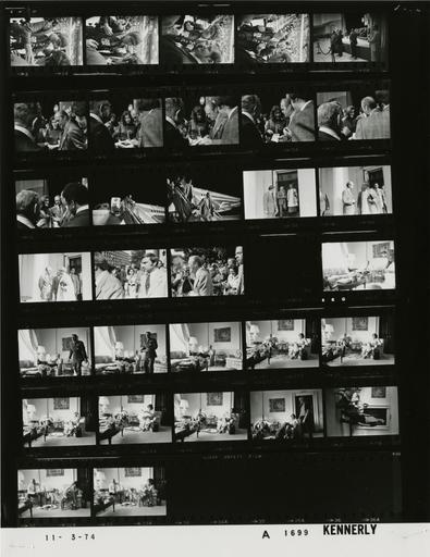 | Keywords: Ford A1699 NLGRF photo contact sheet (1974-11-02)(Gerald Ford Library).jpg White House Photographic Office WHPO is housed at the Gerald R Ford Presidential Library a branch of the National Archives and Records Administration NARA <br/><br/> This file is a 200 dpi photo contact sheet having images from roll of film A1699 of the August 9 1974 - January 20 1977 Gerald R Ford White House Photographic Office Series A0001-A9999 and B0001-B2886 photographs <br/><br/> The date on the photo contact sheet is the date the roll of film was processed not necessarily the date the photographs were taken See table below for additional details 1974-11-02 Gerald R Ford Presidential Library Image http //www fordlibrarymuseum gov/library/whphotos/A1699_NLGRF jpg A1699_NLGRF jpg from http //www fordlibrarymuseum gov/library/whphotos/19741102whpo pdf White House Photographs November 2 1974 of the http //www fordlibrarymuseum gov/Library/whphotos/whpo asp White House Photographic Collection page White House Photographic Office WHPO <br/> Creator David Hume Kennerly PD-USGov Institution Institution Gerald R Ford Presidential Library Table wikitable sortable + Photo contact sheet A1699 U S President Ford Administration Gerald R Ford Library Frame s Tone Subject proper Subject generic Names Geographic Location Photographer Date - 2-5 BW Washington Post Presidential Photographer -Wichita Kansas talking Frank Johnston Wichita KS Century II Convention Center -Exhibition Hall Kennerly 1974-11-02 - 6 BW Kansas Republican Fundraising Reception -Wichita Kansas GRF at podium Guests seated Secret Service in foreground GRF Platform Guests Secret Service Wichita KS Century II Convention Center -Exhibition Hall Kennerly 1974-11-02 - 7-12 BW Following Kansas Republican Fundraising Reception - Wichita Kansas greeting mingling talking signing autographs GRF Crowd Secret Service Wichita KS Century II Convention Center -Exhibition Hall Kennerly 1974-11-02 - 13-14 BW Arrival from Wichita Kansas -Andrews Air Force Base Maryland walking down steps from Air Force One GRF Staff Andrews Air Force Base MD Andrews Air Force Base Kennerly 1974-11-02 - 15-17 BW Conclusion of Sunday Services talking outside church GRF James Brown Rev John D Harper Washington DC Outside St John's Episcopal Church - Lafayette Square Kennerly 1974-11-03 - 18-19 BW UPI Reporter; Impromptu Press Conference GRF walking through media; partially obscured in first frame GRF Helen Thomas Media Crowd Washington DC Outside St John's Episcopal Church - Lafayette Square Kennerly 1974-11-03 - 20 BW Kennerly 1974-11-03 - 21 BW seated reading newspaper feet on table smoking pipe; Sardo leaning into frame GRF Lt Col Sardo Second Floor - West Sitting Hall Kennerly 1974-11-03 - 22-23 BW United States Marine Corps Aide GRF seated reading newspaper feet on table smoking pipe; Sardo walking by GRF Lt Col Sardo Second Floor - West Sitting Hall Kennerly 1974-11-03 - 24 BW seated reading newspaper feet on table smoking pipe GRF Second Floor - West Sitting Hall Kennerly 1974-11-03 - 25-29 BW Friend of Kennerly seated reading newspaper GRF Patti Young Second Floor - West Sitting Hall Kennerly 1974-11-03 - 30-31 BW Friend of Kennerly; Pet Golden Retriever GRF and Young seated Susan standing; dog moving GRF Susan Ford Patti Young Liberty Second Floor - West Sitting Hall Kennerly 1974-11-03 - 32-33 0 BW Friend of Kennerly; Pet Golden Retriever A1754 is a Blank Roll seated Young petting dog GRF Patti Young Liberty Second Floor - West Sitting Hall Kennerly 1974-11-03 Gerald R Ford Presidential Library and Museum-cooperation PD-USGov Contact sheets by the Ford White House November 1974 Photographs by David Hume Kennerly from 1974 |