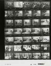 | Keywords: Ford A1790 NLGRF photo contact sheet (1974-11-05)(Gerald Ford Library).jpg White House Photographic Office WHPO is housed at the Gerald R Ford Presidential Library a branch of the National Archives and Records Administration NARA <br/><br/> This file is a 200 dpi photo contact sheet having images from roll of film A1790 of the August 9 1974 - January 20 1977 Gerald R Ford White House Photographic Office Series A0001-A9999 and B0001-B2886 photographs <br/><br/> The date on the photo contact sheet is the date the roll of film was processed not necessarily the date the photographs were taken See table below for additional details 1974-11-05 Gerald R Ford Presidential Library Image http //www fordlibrarymuseum gov/library/whphotos/A1790_NLGRF jpg A1790_NLGRF jpg from http //www fordlibrarymuseum gov/library/whphotos/19741105whpo pdf White House Photographs November 5 1974 of the http //www fordlibrarymuseum gov/Library/whphotos/whpo asp White House Photographic Collection page White House Photographic Office WHPO <br/> Creator David Hume Kennerly PD-USGov Institution Institution Gerald R Ford Presidential Library Table wikitable sortable + Photo contact sheet A1790 U S President Ford Administration Gerald R Ford Library Frame s Tone Subject proper Subject generic Names Geographic Location Photographer Date - 1A BW Watching Election Returns seated around table laughing; Rumsfeld standing Carlson Nessen Hartmann Betty Ford GRF Rumsfeld Timmons Marsh Cheney Others Roosevelt Room Kennerly 1974-11-05 - 2A BW Watching Election Returns- Manager for Public and Customer Relations and Aerospace Group Executive for Thiokol Corporation - Pet Golden Retriever seated near fireplace Liberty lying on floor Susan Ford James Brown Liberty Oval Office Kennerly 1974-11-05 - 3A-5A BW Watching Election Returns seated and standing around table Carlson Nessen Hartmann Betty Ford GRF Rumsfeld Timmons Marsh Cheney Ash Others Cabinet Room Kennerly 1974-11-05 - 6A-10A BW Watching Election Returns -Pet Golden Retriever GRF seated at desk playing with Liberty; Susan standing next to GRF kissing in frame 8A; Susan not in 10A GRF Susan Ford Liberty Oval Office Kennerly 1974-11-05 - 11A-14A BW Watching Election Returns -Sister-in-Law; Friend of Kennerly GRF seated at desk Hartmann standing near televisions others seated near fireplace -all not in every frame; taken from Colonnade GRF Hartmann Janet Ford Patti Young Others Oval Office Kennerly 1974-11-05 - 15A-19A BW Watching Election Returns seated at desk watching four televisions; wearing glasses; Unidentified Man walking across frame 15A GRF Unidentified Man Oval Office Kennerly 1974-11-05 - 20A-21A BW Watching Election Returns -Consultant Counsellor to the President GRF seated at desk; Stiles standing leaning on desk; four televisions in background GRF Jack Stiles Oval Office Kennerly 1974-11-05 - 22A-23A BW Watching Election Returns GRF seated at desk; Rumsfeld standing nearby; watching four televisions in background GRF Rumsfeld Oval Office Kennerly 1974-11-05 - 24A BW Watching Election Returns GRF and Mrs Ford seated around desk; others seated near fireplace -taken from behind GRF and BF; four televisions in background GRF Betty Ford Hartmann Howe Nessen Oval Office Kennerly 1974-11-05 - 25A-35A BW Watching Election Returns GRF seated others standing around desk looking at computer print-outs - all not in every frame; various angles and distances GRF Hartmann Nessen Marsh O'Donnell Others Oval Office Kennerly 1974-11-05 Gerald R Ford Presidential Library and Museum-cooperation PD-USGov Contact sheets by the Ford White House November 1974 Photographs by David Hume Kennerly from 1974 |