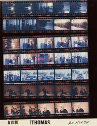 | Keywords: Ford A1990 NLGRF photo contact sheet (1974-11-20)(Gerald Ford Library).jpg White House Photographic Office WHPO is housed at the Gerald R Ford Presidential Library a branch of the National Archives and Records Administration NARA <br/><br/> This file is a 200 dpi photo contact sheet having images from roll of film A1990 of the August 9 1974 - January 20 1977 Gerald R Ford White House Photographic Office Series A0001-A9999 and B0001-B2886 photographs <br/><br/> The date on the photo contact sheet is the date the roll of film was processed not necessarily the date the photographs were taken See table below for additional details 1974-11-20 Gerald R Ford Presidential Library Image http //www fordlibrarymuseum gov/library/whphotos/A1990_NLGRF jpg A1990_NLGRF jpg from http //www fordlibrarymuseum gov/library/whphotos/19741120whpo pdf White House Photographs November 20 1974 of the http //www fordlibrarymuseum gov/Library/whphotos/whpo asp White House Photographic Collection page White House Photographic Office WHPO - Thomas PD-USGov Institution Institution Gerald R Ford Presidential Library Table wikitable sortable + Photo contact sheet A1990 U S President Ford Administration Gerald R Ford Library Frame s Tone Subject proper Subject generic Names Geographic Location Photographer Date - 2-3 Color Trip to Japan - 1st Visit to Japan by Sitting U S President - Prior to Arrival Of Prime Minister Kakuei Tanaka - Local Time waiting in doorway - silhouette of GRF taken towards door GRF Staff Tokyo Japan Akasaka Palace Thomas 1974-11-20 - 4-8 Color Trip to Japan - 1st Visit to Japan by Sitting U S President - Arrival Of Prime Minister - Local Time greeting handshaking GRF Kakuei Tanaka Others Tokyo Japan Akasaka Palace - Outside Thomas 1974-11-20 - 9 Color Trip to Japan - 1st Visit to Japan by Sitting U S President - Prior to Meeting With Prime Minister - Local Time walking into Palace -backs to camera GRF Kakuei Tanaka Kissinger Others Tokyo Japan Akasaka Palace - Outside Thomas 1974-11-20 - 10-11 Color Trip to Japan - 1st Visit to Japan by Sitting U S President - Prior to Meeting With Prime Minister - Local Time taking photographs Media Tokyo Japan Akasaka Palace - Second Floor Salon Thomas 1974-11-20 - 12 Color Trip to Japan - 1st Visit to Japan by Sitting U S President - Following Meeting With Prime Minister - Local Time walking down hallway GRF Kakuei Tanaka Media Others Tokyo Japan Akasaka Palace - Second Floor Salon Thomas 1974-11-20 - 13-18 Color Trip to Japan - 1st Visit to Japan by Sitting U S President - Photo Opportunity Following Meeting With Prime Minister - Local Time standing posing handshaking GRF Kakuei Tanaka Media Others Tokyo Japan Akasaka Palace - Outside Thomas 1974-11-20 - 19 Color Trip to Japan - 1st Visit to Japan by Sitting U S President - Following Meeting Departure of Prime Minister Tanaka - Local Time walking into Palace -backs to camera GRF Kissinger Scowcroft Others Tokyo Japan Akasaka Palace - Outside Thomas 1974-11-20 - 20-22 Color Trip to Japan - 1st Visit to Japan by Sitting U S President - Prior to Departure for the Imperial Hotel - Local Time standing near limousine GRF Lt Cmdr Todd Aides Palace Staff Tokyo Japan Akasaka Palace - Outside Thomas 1974-11-20 - 23-26 Color Trip to Japan - 1st Visit to Japan by Sitting U S President - Motorcade to the Imperial Hotel - Local Time standing near limousines driving through Palace gates Secret Service Tokyo Japan Akasaka Palace - Outside Thomas 1974-11-20 - 27-30 Color Trip to Japan - 1st Visit to Japan by Sitting U S President - Prior to Japanese Press Club Reception - Local Time talking; Kissinger seated at table Nessen leaning Kissinger Nessen Tokyo Japan Imperial Hotel Thomas 1974-11-20 - 31 Color Trip to Japan - 1st Visit to Japan by Sitting U S President - Prior to Japanese Press Club Reception - Local Time talking; Kissinger seated at table Nessen and Halaby leaning Kissinger Nessen Halaby Tokyo Japan Imperial Hotel Thomas 1974-11-20 - 32-33 Color Trip to Japan - 1st Visit to Japan by Sitting U S President - Prior to Japanese Press Club Reception - Local Time talking; Kissinger seated at table Nessen and Scowcroft leaning Kissinger Nessen Scowcroft Tokyo Japan Imperial Hotel Thomas 1974-11-20 - 34-36 Color Trip to Japan - 1st Visit to Japan by Sitting U S President - Japanese Press Club Reception - Local Time seated at table listening to speaker; right hand on chin GRF Tokyo Japan Imperial Hotel Thomas 1974-11-20 Gerald R Ford Presidential Library and Museum-cooperation PD-USGov Contact sheets by the Ford White House November 1974 |