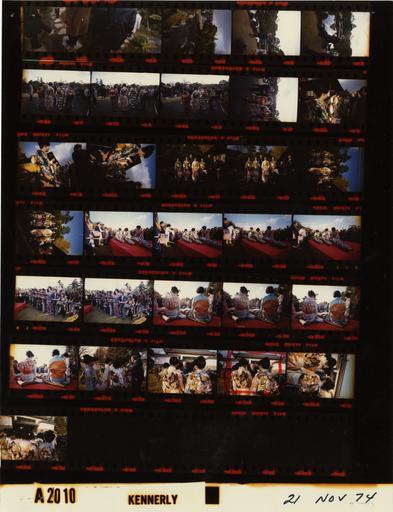 Keywords: Ford A2010 NLGRF photo contact sheet (1974-11-21)(Gerald Ford Library).jpg White House Photographic Office WHPO is housed at the Gerald R Ford Presidential Library a branch of the National Archives and Records Administration NARA <br/><br/> This file is a 200 dpi photo contact sheet having images from roll of film A2010 of the August 9 1974 - January 20 1977 Gerald R Ford White House Photographic Office Series A0001-A9999 and B0001-B2886 photographs <br/><br/> The date on the photo contact sheet is the date the roll of film was processed not necessarily the date the photographs were taken See table below for additional details 1974-11-21 Gerald R Ford Presidential Library Image http //www fordlibrarymuseum gov/library/whphotos/A2010_NLGRF jpg A2010_NLGRF jpg from http //www fordlibrarymuseum gov/library/whphotos/19741121whpo pdf White House Photographs November 21 1974 of the http //www fordlibrarymuseum gov/Library/whphotos/whpo asp White House Photographic Collection page White House Photographic Office WHPO <br/> Creator David Hume Kennerly PD-USGov Institution Institution Gerald R Ford Presidential Library Table wikitable sortable + Photo contact sheet A2010 U S President Ford Administration Gerald R Ford Library Frame s Tone Subject proper Subject generic Names Geographic Location Photographer Date - 3A-5A Color Trip to Japan - 1st Visit to Japan by Sitting U S President - Tour of Residence for Shogun Rulers - Local Time walking across footbridge and through garden GRF Kyoto Japan Nijo Castle -Seiryuuen Garden Area Kennerly 1974-11-21 - 6A-20A Color Trip to Japan - 1st Visit to Japan by Sitting U S President - Tour of Residence for Shogun Rulers - Local Time GRF watching musicians perform; standing posing GRF Musicians Kyoto Japan Nijo Castle -Seiryuuen Garden Area Kennerly 1974-11-21 - 21A-22A Color Trip to Japan - 1st Visit to Japan by Sitting U S President - Tour of Residence for Shogun Rulers - Local Time standing behind rope; some extending microphones others taking photographs Media Kyoto Japan Nijo Castle -Seiryuuen Garden Area Kennerly 1974-11-21 - 23A-26A Color Trip to Japan - 1st Visit to Japan by Sitting U S President - Tour of Residence for Shogun Rulers - Local Time kneeling backs to camera Girls in Traditional Dress Kyoto Japan Nijo Castle -Seiryuuen Garden Area Kennerly 1974-11-21 - 27A-31A Color Trip to Japan - 1st Visit to Japan by Sitting U S President - Tour of Residence for Shogun Rulers - Local Time standing talking; some holding flags - all not in every frame GRF Girls in Traditional Dress Kyoto Japan Nijo Castle -Seiryuuen Garden Area Kennerly 1974-11-21 - 1A-2A Color Trip to Japan - 1st Visit to Japan by Sitting U S President - Tour of Residence for Shogun Rulers - Local Time Kyoto Japan Nijo Castle Kennerly 1974-11-21 Gerald R Ford Presidential Library and Museum-cooperation PD-USGov Contact sheets by the Ford White House November 1974 Photographs by David Hume Kennerly from 1974 |