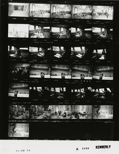 Keywords: Ford A2056 NLGRF photo contact sheet (1974-11-20)(Gerald Ford Library).jpg White House Photographic Office WHPO is housed at the Gerald R Ford Presidential Library a branch of the National Archives and Records Administration NARA <br/><br/> This file is a 200 dpi photo contact sheet having images from roll of film A2056 of the August 9 1974 - January 20 1977 Gerald R Ford White House Photographic Office Series A0001-A9999 and B0001-B2886 photographs <br/><br/> The date on the photo contact sheet is the date the roll of film was processed not necessarily the date the photographs were taken See table below for additional details 1974-11-20 Gerald R Ford Presidential Library Image http //www fordlibrarymuseum gov/library/whphotos/A2056_NLGRF jpg A2056_NLGRF jpg from http //www fordlibrarymuseum gov/library/whphotos/19741120whpo pdf White House Photographs November 20 1974 of the http //www fordlibrarymuseum gov/Library/whphotos/whpo asp White House Photographic Collection page White House Photographic Office WHPO <br/> Creator David Hume Kennerly PD-USGov Institution Institution Gerald R Ford Presidential Library Table wikitable sortable + Photo contact sheet A2056 U S President Ford Administration Gerald R Ford Library Frame s Tone Subject proper Subject generic Names Geographic Location Photographer Date - 2A BW Trip to Japan - 1st Visit to Japan by Sitting U S President - Prior to Arrival of Prime Minister Kakuei Tanaka - Head of Suite of Honour - Local Time standing in entrance GRF Amb Hodgson Nobuhiko Ushiba Tokyo Japan Akasaka Palace Kennerly 1974-11-20 - 3A-6A BW Trip to Japan - 1st Visit to Japan by Sitting U S President - Face to Face Meeting with Prime Minister - Local Time seated talking; media behind rope for photo opportunity GRF Kakuei Tanaka Kissinger Habib Scowcroft Richard Smyser NSC Interpreter Others Media Tokyo Japan Akasaka Palace - Second Floor Salon Kennerly 1974-11-20 - 7A-16A BW Trip to Japan - 1st Visit to Japan by Sitting U S President - Motorcade to Imperial Hotel - Local Time getting in limosuine 7A seated going over speech smoking pipe; 7A is overexposed GRF Tokyo Japan Limousine Kennerly 1974-11-20 - 17A BW Trip to Japan - 1st Visit to Japan by Sitting U S President - Prior to Japan Press Club Luncheon - Local Time walking towards front of banquet hall Kissinger Secret Service Tokyo Japan Imperial Hotel Kennerly 1974-11-20 - 18A-22A BW Trip to Japan - 1st Visit to Japan by Sitting U S President - Speech at Japan Press Club Luncheon - Local Time GRF speaking at podium others seated GRF Platform Guests Tokyo Japan Imperial Hotel Kennerly 1974-11-20 - 23A-26A BW Trip to Japan - 1st Visit to Japan by Sitting U S President - Motorcade to Akasaka Palace - Local Time GRF seated waving GRF Driver Tokyo Japan Limousine Kennerly 1974-11-20 - 27A-28A BW Trip to Japan - 1st Visit to Japan by Sitting U S President - Local Time preparing room for State Dinner Palace Staff Tokyo Japan Akasaka Palace - Banquet Hall Kennerly 1974-11-20 - 29A-32A BW Trip to Japan - 1st Visit to Japan by Sitting U S President - Local Time seated talking GRF Hartmann Rumsfeld Tokyo Japan Akasaka Palace - Suite of Honour President's Quarters Kennerly 1974-11-20 Gerald R Ford Presidential Library and Museum-cooperation PD-USGov Contact sheets by the Ford White House November 1974 Photographs by David Hume Kennerly from 1974 |