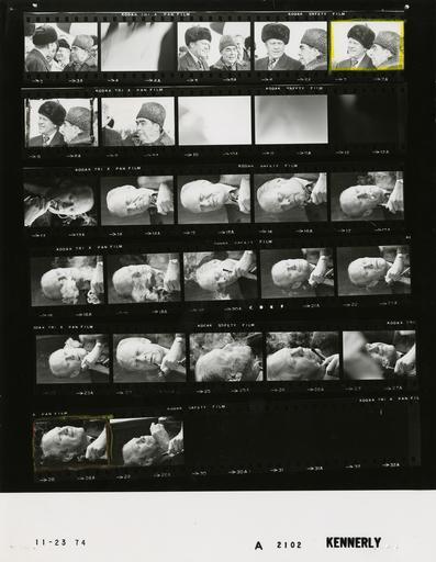 | Keywords: Ford A2102 NLGRF photo contact sheet (1974-11-23)(Gerald Ford Library).jpg White House Photographic Office WHPO is housed at the Gerald R Ford Presidential Library a branch of the National Archives and Records Administration NARA <br/><br/> This file is a 200 dpi photo contact sheet having images from roll of film A2102 of the August 9 1974 - January 20 1977 Gerald R Ford White House Photographic Office Series A0001-A9999 and B0001-B2886 photographs <br/><br/> The date on the photo contact sheet is the date the roll of film was processed not necessarily the date the photographs were taken See table below for additional details 1974-11-23 Gerald R Ford Presidential Library Image http //www fordlibrarymuseum gov/library/whphotos/A2102_NLGRF jpg A2102_NLGRF jpg from http //www fordlibrarymuseum gov/library/whphotos/19741123whpo pdf White House Photographs November 23 1974 of the http //www fordlibrarymuseum gov/Library/whphotos/whpo asp White House Photographic Collection page White House Photographic Office WHPO <br/> Creator David Hume Kennerly PD-USGov Institution Institution Gerald R Ford Presidential Library Table wikitable sortable + Photo contact sheet A2102 U S President Ford Administration Gerald R Ford Library Frame s Tone Subject proper Subject generic Names Geographic Location Photographer Date - 3 BW Trip to the Union of Soviet Socialist Republics -Arrival Ceremony -General Secretary Interpreter - Local Time standing talking - GRF wearing Russian wool cap GRF Brezhnev Victor Sukhrodev Vladivostok U S S R Vozdvizhenka Airport Kennerly 1974-11-23 - 4 BW Kennerly 1974-11-23 - 5-8 BW Trip to the Union of Soviet Socialist Republics -Arrival Ceremony -General Secretary - Local Time standing talking smiling posing -GRF wearing Russian wool cap GRF Brezhnev Vladivostok U S S R Vozdvizhenka Airport Kennerly 1974-11-23 - 9 BW Trip to the Union of Soviet Socialist Republics -Arrival Ceremony -General Secretary - Local Time waving Brezhnev Vladivostok U S S R Vozdvizhenka Airport Kennerly 1974-11-23 - 10-12 BW Kennerly 1974-11-23 - 13-29 BW Trip to the Union of Soviet Socialist Republics -Train Ride to Vladivostok - Local Time smoking pipe - head and shoulder portrait s GRF Vladivostok U S S R Train Kennerly 1974-11-23 Gerald R Ford Presidential Library and Museum-cooperation PD-USGov Contact sheets by the Ford White House November 1974 Photographs by David Hume Kennerly from 1974 |