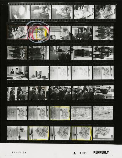 | Keywords: Ford A2104 NLGRF photo contact sheet (1974-11-23)(Gerald Ford Library).jpg White House Photographic Office WHPO is housed at the Gerald R Ford Presidential Library a branch of the National Archives and Records Administration NARA <br/><br/> This file is a 200 dpi photo contact sheet having images from roll of film A2104 of the August 9 1974 - January 20 1977 Gerald R Ford White House Photographic Office Series A0001-A9999 and B0001-B2886 photographs <br/><br/> The date on the photo contact sheet is the date the roll of film was processed not necessarily the date the photographs were taken See table below for additional details 1974-11-23 Gerald R Ford Presidential Library Image http //www fordlibrarymuseum gov/library/whphotos/A2104_NLGRF jpg A2104_NLGRF jpg from http //www fordlibrarymuseum gov/library/whphotos/19741123whpo pdf White House Photographs November 23 1974 of the http //www fordlibrarymuseum gov/Library/whphotos/whpo asp White House Photographic Collection page White House Photographic Office WHPO <br/> Creator David Hume Kennerly PD-USGov Institution Institution Gerald R Ford Presidential Library Table wikitable sortable + Photo contact sheet A2104 U S President Ford Administration Gerald R Ford Library Frame s Tone Subject proper Subject generic Names Geographic Location Photographer Date - 1-3 BW Trip to the Union of Soviet Socialist Republics -Train Ride to Vladivostok - Local Time smoking pipe GRF U S S R Train Kennerly 1974-11-23 - 4-8 BW Trip to the Union of Soviet Socialist Republics -General Secretary - Train Ride to Vladivostok Local Time seated at table hand on chin; smoking cigarette Brezhnev U S S R Train Kennerly 1974-11-23 - 9-13 BW Trip to the Union of Soviet Socialist Republics -General Secretary - Local Time walking off train - GRF wearing Russian wool cap GRF Brezhnev Others Vladivostok U S S R Train Station Kennerly 1974-11-23 - 14-20 BW Trip to the Union of Soviet Socialist Republics -General Secretary - Local Time walking towards limousine GRF Brezhnev Others Vladivostok U S S R Okeansky Sanitarium -Outside Kennerly 1974-11-23 - 21 BW Trip to the Union of Soviet Socialist Republics -General Secretary - Local Time GRF bending looking into limousine saying goodbye GRF Others Vladivostok U S S R Okeansky Sanitarium -Outside Kennerly 1974-11-23 - 22 BW Trip to the Union of Soviet Socialist Republics Local Time handshaking; Lukash waving Lukash Unidentified Woman Vladivostok U S S R Swimming Pool - Okeansky Sanitarium Kennerly 1974-11-23 - 23-30 BW Trip to the Union of Soviet Socialist Republics Local Time swimming GRF Vladivostok U S S R Swimming Pool - Okeansky Sanitarium Kennerly 1974-11-23 - 31 BW Trip to the Union of Soviet Socialist Republics Local Time GRF swimming Others watching from poolside GRF Lukash Unidentified Woman Vladivostok U S S R Swimming Pool - Okeansky Sanitarium Kennerly 1974-11-23 - 32-35 BW Trip to the Union of Soviet Socialist Republics Local Time swimming GRF Vladivostok U S S R Swimming Pool - Okeansky Sanitarium Kennerly 1974-11-23 Gerald R Ford Presidential Library and Museum-cooperation PD-USGov Contact sheets by the Ford White House November 1974 Photographs by David Hume Kennerly from 1974 |