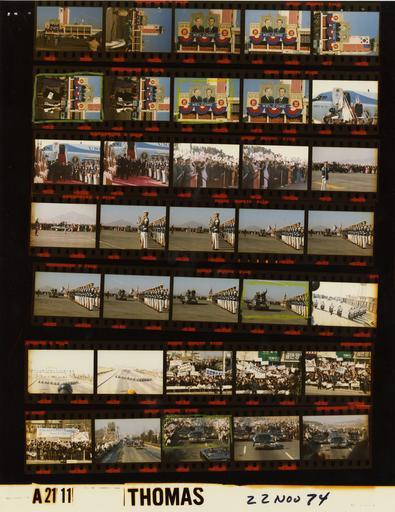 | Keywords: Ford A2111 NLGRF photo contact sheet (1974-11-22)(Gerald Ford Library).jpg White House Photographic Office WHPO is housed at the Gerald R Ford Presidential Library a branch of the National Archives and Records Administration NARA <br/><br/> This file is a 200 dpi photo contact sheet having images from roll of film A2111 of the August 9 1974 - January 20 1977 Gerald R Ford White House Photographic Office Series A0001-A9999 and B0001-B2886 photographs <br/><br/> The date on the photo contact sheet is the date the roll of film was processed not necessarily the date the photographs were taken See table below for additional details 1974-11-22 Gerald R Ford Presidential Library Image http //www fordlibrarymuseum gov/library/whphotos/A2111_NLGRF jpg A2111_NLGRF jpg from http //www fordlibrarymuseum gov/library/whphotos/19741122whpo pdf White House Photographs November 22 1974 of the http //www fordlibrarymuseum gov/Library/whphotos/whpo asp White House Photographic Collection page White House Photographic Office WHPO - Thomas PD-USGov Institution Institution Gerald R Ford Presidential Library Table wikitable sortable + Photo contact sheet A2111 U S President Ford Administration Gerald R Ford Library Frame s Tone Subject proper Subject generic Names Geographic Location Photographer Date - 34-37 Color Trip to the Republic of Korea - Motorcade to Chosun Hotel - Local Time limousines in motorcade -GRF in closed vehicle Secret Service Police Crowd Seoul South Korea Street Scene Thomas 1974-11-22 - 3-11 Color Trip to the Republic of Korea - Prior to Arrival of Air Force One - Local Time Welcoming Posters Seoul South Korea Kimpo International Airport Thomas 1974-11-22 - 12-14 Color Trip to the Republic of Korea - Arrival Ceremony - President; Foreign Minister; Chief of Protocol; U S Ambassador - Local Time GRF walking down steps of Air Force One; greeting Welcoming Committee - all may not be in every frame GRF President Park Chung Hee Dong Jo Kim Youn Tai Chi Amb Richard Sneider Seoul South Korea Kimpo International Airport Thomas 1974-11-22 - 15-16 Color Trip to the Republic of Korea - Arrival Ceremony - Local Time standing in grandstands Crowd Seoul South Korea Kimpo International Airport Thomas 1974-11-22 - 17-26 Color Trip to the Republic of Korea - Arrival Ceremony - Local Time GRF and President Park inspecting troops from back of limousine; standing waving GRF President Park Chung Hee Honor Guard Seoul South Korea Kimpo International Airport Thomas 1974-11-22 - 27-29 Color Trip to the Republic of Korea - Departure from Airport - Local Time preceding motorcade Motorcycle Escort Seoul South Korea Kimpo International Airport Thomas 1974-11-22 - 30-33 Color Trip to the Republic of Korea - Local Time standing along side of road; holding welcome signs Korean flags Crowd Seoul South Korea Street Scene Thomas 1974-11-22 Gerald R Ford Presidential Library and Museum-cooperation PD-USGov Contact sheets by the Ford White House November 1974 |