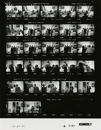 | Keywords: Ford A2183 NLGRF photo contact sheet (1974-11-27)(Gerald Ford Library).jpg White House Photographic Office WHPO is housed at the Gerald R Ford Presidential Library a branch of the National Archives and Records Administration NARA <br/><br/> This file is a 200 dpi photo contact sheet having images from roll of film A2183 of the August 9 1974 - January 20 1977 Gerald R Ford White House Photographic Office Series A0001-A9999 and B0001-B2886 photographs <br/><br/> The date on the photo contact sheet is the date the roll of film was processed not necessarily the date the photographs were taken See table below for additional details 1974-11-27 Gerald R Ford Presidential Library Image http //www fordlibrarymuseum gov/library/whphotos/A2183_NLGRF jpg A2183_NLGRF jpg from http //www fordlibrarymuseum gov/library/whphotos/19741127whpo pdf White House Photographs November 27 1974 of the http //www fordlibrarymuseum gov/Library/whphotos/whpo asp White House Photographic Collection page White House Photographic Office WHPO <br/> Creator David Hume Kennerly PD-USGov Institution Institution Gerald R Ford Presidential Library Table wikitable sortable + Photo contact sheet A2183 U S President Ford Administration Gerald R Ford Library Frame s Tone Subject proper Subject generic Names Geographic Location Photographer Date - 26-28 BW standing talking GRF Mrs O A Tunney Kennerly Second Floor - West Sitting Room Kennerly 1974-11-27 - 29 BW Betty and women standing talking laughing; GRF standing to side GRF Betty Ford Mrs O A Tunney Kennerly Unidentified Woman Second Floor - West Sitting Room Kennerly 1974-11-27 - 3-8 BW Father Mother Sister and Brother-in-Law of David Kennerly seated around room talking - all not in every frame GRF Betty Ford Mr Mrs O A Tunney Kennerly; Mr Mrs Marvin Strutzenberg Second Floor - West Sitting Room Kennerly 1974-11-27 - 9-16 BW Father Mother Sister and Brother-in-Law of David Kennerly standing smiling posing; all not in every frame GRF Betty Ford Mr Mrs O A Tunney Kennerly; Mr Mrs Marvin Strutzenberg Second Floor - West Sitting Room Kennerly 1974-11-27 - 17 BW Father Mother and Brother-in-Law of David Kennerly standing talking GRF Betty Ford Mr Mrs O A Tunney Kennerly; Marvin Strutzenberg Second Floor - West Sitting Room Kennerly 1974-11-27 - 18-21 BW Sister and Brother-in-Law of David Kennerly standing talking GRF Betty Ford Mr Mrs Marvin Strutzenberg Second Floor - West Sitting Room Kennerly 1974-11-27 - 22-25 BW Father of David Kennerly talking kissing Betty Ford O A Tunney Kennerly Second Floor - West Sitting Room Kennerly 1974-11-27 Gerald R Ford Presidential Library and Museum-cooperation PD-USGov Contact sheets by the Ford White House November 1974 Photographs by David Hume Kennerly from 1974 |