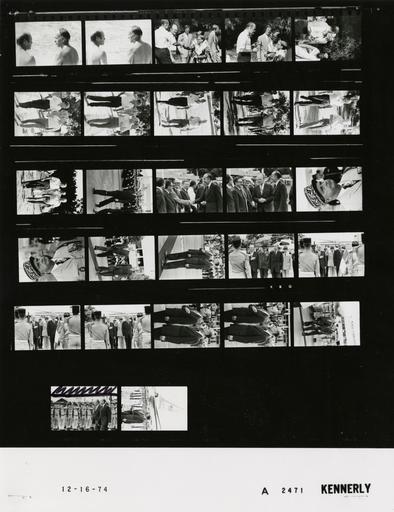 Keywords: Ford A2471 NLGRF photo contact sheet (1974-12-15)(Gerald Ford Library).jpg White House Photographic Office WHPO is housed at the Gerald R Ford Presidential Library a branch of the National Archives and Records Administration NARA <br/><br/> This file is a 200 dpi photo contact sheet having images from roll of film A2471 of the August 9 1974 - January 20 1977 Gerald R Ford White House Photographic Office Series A0001-A9999 and B0001-B2886 photographs <br/><br/> The date on the photo contact sheet is the date the roll of film was processed not necessarily the date the photographs were taken See table below for additional details 1974-12-15 Gerald R Ford Presidential Library Image http //www fordlibrarymuseum gov/library/whphotos/A2471_NLGRF jpg A2471_NLGRF jpg from http //www fordlibrarymuseum gov/library/whphotos/19741215whpo pdf White House Photographs December 15 1974 of the http //www fordlibrarymuseum gov/Library/whphotos/whpo asp White House Photographic Collection page White House Photographic Office WHPO <br/> Creator David Hume Kennerly PD-USGov Institution Institution Gerald R Ford Presidential Library Table wikitable sortable + Photo contact sheet A2471 U S President Ford Administration Gerald R Ford Library Frame s Tone Subject proper Subject generic Names Geographic Location Photographer Date - 2A-3A BW Trip to Martinique - Meeting with President of the Republic of France standing in pool talking backs to camera GRF Valery Giscard d'Estaing Martinique French West Indies Leyritz Plantation Hotel - Swimming Pool Kennerly 1974-12-15 - 4A-6A BW Trip to Martinique - Meeting with President of the Republic of France greeting handshaking -only GRF in all frames GRF Valery Giscard d'Estaing Others Martinique French West Indies Leyritz Plantation Hotel - Grounds Kennerly 1974-12-15 - 7A-12A BW Trip to Martinique - Meeting with President of the Republic of France walking talking - various distances GRF Valery Giscard d'Estaing Others Martinique French West Indies Leyritz Plantation Hotel - Grounds Kennerly 1974-12-15 - 13A BW Trip to Martinique - Departure Ceremony Following Meetings with President of the Republic of France walking Valery Giscard d'Estaing Others Martinique French West Indies Lamentin Airport Kennerly 1974-12-16 - 14A-15A BW Trip to Martinique - Departure Ceremony Following Meetings with President of the Republic of France talking handshaking GRF Valery Giscard d'Estaing Kissinger Others Martinique French West Indies Lamentin Airport Kennerly 1974-12-16 - 16A-17A BW Trip to Martinique - Departure Ceremony Following Meetings with President of the Republic of France wearing cap with gold braid French Officer Martinique French West Indies Lamentin Airport Kennerly 1974-12-16 - 18A-26A BW Trip to Martinique - Departure Ceremony Following Meetings with President of the Republic of France walking stopping for anthems; GRF with hand over heart in six frames - various angles and distances GRF Valery Giscard d'Estaing Martinique French West Indies Lamentin Airport Kennerly 1974-12-16 - 27A-28A BW Trip to Martinique - Departure Ceremony Following Meetings with President of the Republic of France walking; Guards standing in background -tail of Air Force One in second frame GRF Valery Giscard d'Estaing Honor Guards Martinique French West Indies Lamentin Airport Kennerly 1974-12-16 Gerald R Ford Presidential Library and Museum-cooperation PD-USGov Contact sheets by the Ford White House December 1974 Photographs by David Hume Kennerly from 1974 |