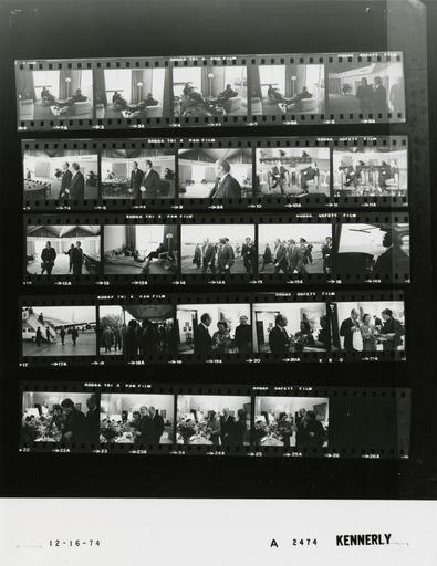 | Keywords: Ford A2474 NLGRF photo contact sheet (1974-12-16)(Gerald Ford Library).jpg White House Photographic Office WHPO is housed at the Gerald R Ford Presidential Library a branch of the National Archives and Records Administration NARA <br/><br/> This file is a 200 dpi photo contact sheet having images from roll of film A2474 of the August 9 1974 - January 20 1977 Gerald R Ford White House Photographic Office Series A0001-A9999 and B0001-B2886 photographs <br/><br/> The date on the photo contact sheet is the date the roll of film was processed not necessarily the date the photographs were taken See table below for additional details 1974-12-16 Gerald R Ford Presidential Library Image http //www fordlibrarymuseum gov/library/whphotos/A2474_NLGRF jpg A2474_NLGRF jpg from http //www fordlibrarymuseum gov/library/whphotos/19741216whpo pdf White House Photographs December 16 1974 of the http //www fordlibrarymuseum gov/Library/whphotos/whpo asp White House Photographic Collection page White House Photographic Office WHPO <br/> Creator David Hume Kennerly PD-USGov Institution Institution Gerald R Ford Presidential Library Table wikitable sortable + Photo contact sheet A2474 U S President Ford Administration Gerald R Ford Library Frame s Tone Subject proper Subject generic Names Geographic Location Photographer Date - 2A-5A BW Trip to Martinique - Prior to Final Meeting with President of the Republic of France seated talking GRF Kissinger Martinique French West Indies Meridien Hotel - President's Suite Kennerly 1974-12-16 - 6A-9A BW Trip to Martinique - Final Meeting with President of the Republic of France walking talking - Giscard obscured in last frame GRF Valery Giscard d'Estaing Martinique French West Indies Meridien Hotel - Bougainville Room Kennerly 1974-12-16 - 10A-11A BW Trip to Martinique - Final Meeting with President of the Republic of France seated talking GRF Valery Giscard d'Estaing Martinique French West Indies Meridien Hotel - Bougainville Room Kennerly 1974-12-16 - 12A BW Trip to Martinique - Final Meeting with President of the Republic of France walking smiling; Kissinger in background GRF Valery Giscard d'Estaing Martinique French West Indies Meridien Hotel - Bougainville Room Kennerly 1974-12-16 - 13A BW Trip to Martinique - Prior to Departure Following Meetings with President of the Republic of France seated talking - opened briefcase on unmade bed in foreground GRF Kissinger Martinique French West Indies Meridien Hotel - President's Suite Kennerly 1974-12-16 - 14A-15A BW Trip to Martinique - Prior to Departure Following Meetings with President of the Republic of France talking walking towards helipad GRF Kissinger Others Martinique French West Indies Meridien Hotel - Grounds Kennerly 1974-12-16 - 17A BW Return Following Meetings with President of the Republic of France in Martinique French West Indies - Andrews Air Force Base Maryland greeting handshaking at base of steps to Air Force One GRF Air Force Officer Andrews Air Force Base MD Andrews Air Force Base Kennerly 1974-12-16 - 18A BW Return to White House Following Meetings with President of the Republic of France in Martinique French West Indies greeting handshaking under canopy GRF Melvin Laird Others South Portico Kennerly 1974-12-16 - 19A-25A BW Return to White House Following Meetings with President of the Republic of France in Martinique French West Indies standing talking looking at gifts from trip -Susan wearing bandana GRF Betty Ford Susan Ford Second Floor - West Sitting Room Kennerly 1974-12-16 - 16A BW Trip to Martinique - Flight fro Andrews Air Force Base to the White House Following Meetings with President of the Republic of France in Martinique view over helicopter pilot's shoulder Pilot Washington DC Marine One Kennerly 1974-12-16 Gerald R Ford Presidential Library and Museum-cooperation PD-USGov Contact sheets by the Ford White House December 1974 Photographs by David Hume Kennerly from 1974 |