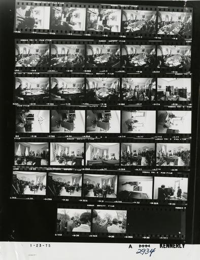 | Keywords: Ford A2934 NLGRF photo contact sheet (1975-01-23)(Gerald Ford Library).jpg White House Photographic Office WHPO is housed at the Gerald R Ford Presidential Library a branch of the National Archives and Records Administration NARA <br/><br/> This file is a 200 dpi photo contact sheet having images from roll of film A2934 of the August 9 1974 - January 20 1977 Gerald R Ford White House Photographic Office Series A0001-A9999 and B0001-B2886 photographs <br/><br/> The date on the photo contact sheet is the date the roll of film was processed not necessarily the date the photographs were taken See table below for additional details 1975-01-23 Gerald R Ford Presidential Library Image http //www fordlibrarymuseum gov/library/whphotos/A2934_NLGRF jpg A2934_NLGRF jpg from http //www fordlibrarymuseum gov/library/whphotos/19750123whpo pdf White House Photographs January 23 1975 of the http //www fordlibrarymuseum gov/Library/whphotos/whpo asp White House Photographic Collection page White House Photographic Office WHPO <br/> Creator David Hume Kennerly PD-USGov Institution Institution Gerald R Ford Presidential Library Table wikitable sortable + Photo contact sheet A2934 U S President Ford Administration Gerald R Ford Library Frame s Tone Subject proper Subject generic Names Geographic Location Photographer Date - 4-6 BW Greenspan reading newspaper others moving around Greenspan Others Scheduling and Advance Office Kennerly 1975-01-23 - 7-17 BW Meeting to Discuss Energy and Economic Proposals with Governors from the Northeastern United States seated around table talking - all not in every frame GRF Govs Byrne Carey Ducks Grasso Longley Noel Salmon Shapp Thompson Tribitt; Marsh Rumsfeld Zarb Falk Raoul-Duval Zausner Cabinet Room Kennerly 1975-01-23 - 18-23 BW standing near desk looking at documents - various angles; O'Donnell in first frame GRF President's Private Office Kennerly 1975-01-23 - 24 BW Prior to Signing Ceremony for Proclamation 4341 Regulating the Import of Petroleum and Petroleum Products walking into room GRF Zarb Seidman Greenspan Oval Office Kennerly 1975-01-23 - 25-30 BW Signing Ceremony for Proclamation 4341 Regulating the Import of Petroleum and Petroleum Products GRF seated at desk speaking looking toward media; others standing behind - various angles and distances GRF Zarb Seidman Greenspan Media Oval Office Kennerly 1975-01-23 - 31-32 BW Following Signing Ceremony for Proclamation 4341 Regulating the Import of Petroleum and Petroleum Products walking out of Oval Office into Private Office GRF Oval Office Kennerly 1975-01-23 - 33 BW Following Signing Ceremony for Proclamation 4341 Regulating the Import of Petroleum and Petroleum Products standing talking GRF Nessen Cheney President's Private Office Kennerly 1975-01-23 - 34-35 BW Meeting With Press to Discuss the Import of Petroleum and Petroleum Products Legislation GRF talking; back to camera GRF Media North Grounds Kennerly 1975-01-23 Gerald R Ford Presidential Library and Museum-cooperation PD-USGov Contact sheets by the Ford White House January 1975 Photographs by David Hume Kennerly from 1975 |