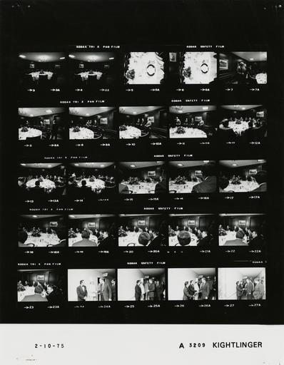 | Keywords: Ford A3209 NLGRF photo contact sheet (1975-02-10)(Gerald Ford Library).jpg White House Photographic Office WHPO is housed at the Gerald R Ford Presidential Library a branch of the National Archives and Records Administration NARA <br/><br/> This file is a 200 dpi photo contact sheet having images from roll of film A3209 of the August 9 1974 - January 20 1977 Gerald R Ford White House Photographic Office Series A0001-A9999 and B0001-B2886 photographs <br/><br/> The date on the photo contact sheet is the date the roll of film was processed not necessarily the date the photographs were taken See table below for additional details 1975-02-10 Gerald R Ford Presidential Library Image http //www fordlibrarymuseum gov/library/whphotos/A3209_NLGRF jpg A3209_NLGRF jpg from http //www fordlibrarymuseum gov/library/whphotos/19750210whpo pdf White House Photographs February 10 1975 of the http //www fordlibrarymuseum gov/Library/whphotos/whpo asp White House Photographic Collection page White House Photographic Office WHPO - Kightlinger PD-USGov Institution Institution Gerald R Ford Presidential Library Table wikitable sortable + Photo contact sheet A3209 U S President Ford Administration Gerald R Ford Library Frame s Tone Subject proper Subject generic Names Geographic Location Photographer Date - 3-6 BW Trip to Houston Texas -Prior to Working Dinner With Southwestern Governors - Houston Texas Table Settings Houston TX Shamrock Hilton Hotel - Walnut Room Kightlinger 1975-02-10 - 7-23 BW Trip to Houston Texas -Working Dinner With Southwestern Governors -Houston Texas seated around table; various angles and distances; all not in every frame GRF Govs Briscoe Castro Apodaca Boren Pryor; Morton Hartmann Greenspan Zarb Nessen Cheney O'Neill Falk Houston TX Shamrock Hilton Hotel - Walnut Room Kightlinger 1975-02-10 - 24-27 BW Trip to Houston Texas -Photo Opportunity with Hotel Executive Chef - Houston Texas greeting handshaking standing talking; all not in every frame GRF Chef Hans John Others Houston TX Shamrock Hilton Hotel Kightlinger 1975-02-10 Gerald R Ford Presidential Library and Museum-cooperation PD-USGov Contact sheets by the Ford White House February 1975 |