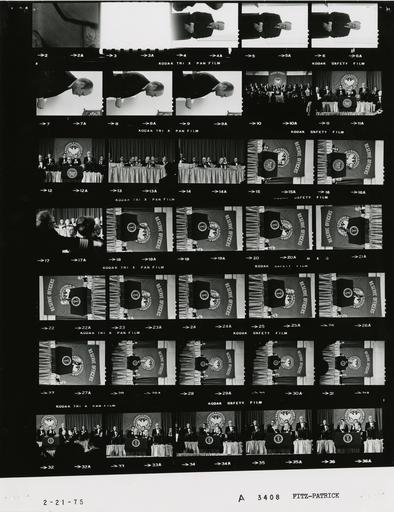 | Keywords: Ford A3408 NLGRF photo contact sheet (1975-02-21)(Gerald Ford Library).jpg White House Photographic Office WHPO is housed at the Gerald R Ford Presidential Library a branch of the National Archives and Records Administration NARA <br/><br/> This file is a 200 dpi photo contact sheet having images from roll of film A3408 of the August 9 1974 - January 20 1977 Gerald R Ford White House Photographic Office Series A0001-A9999 and B0001-B2886 photographs <br/><br/> The date on the photo contact sheet is the date the roll of film was processed not necessarily the date the photographs were taken See table below for additional details 1975-02-21 Gerald R Ford Presidential Library Image http //www fordlibrarymuseum gov/library/whphotos/A3408_NLGRF jpg A3408_NLGRF jpg from http //www fordlibrarymuseum gov/library/whphotos/19750221whpo pdf White House Photographs February 21 1975 of the http //www fordlibrarymuseum gov/Library/whphotos/whpo asp White House Photographic Collection page White House Photographic Office WHPO - Fitz-Patrick PD-USGov Institution Institution Gerald R Ford Presidential Library Table wikitable sortable + Photo contact sheet A3408 U S President Ford Administration Gerald R Ford Library Frame s Tone Subject proper Subject generic Names Geographic Location Photographer Date - 2A-3A BW Fitz-Patrick 1975-02-21 - 4A-9A BW Photo Shoot with Fabian Bachrach medium range portrait s GRF President's Private Office Fitz-Patrick 1975-02-21 - 10A-36A BW Reserve Officers Association of the U S Mid-Winter Banquet GRF speaking; at lectern in frames 15A-31A; Reserve Officers banner in background; all not in every frame; various angles and distances; formal wear GRF Reserve Officers Others Washington DC Washington Hilton Hotel Fitz-Patrick 1975-02-21 Gerald R Ford Presidential Library and Museum-cooperation PD-USGov Contact sheets by the Ford White House February 1975 |
