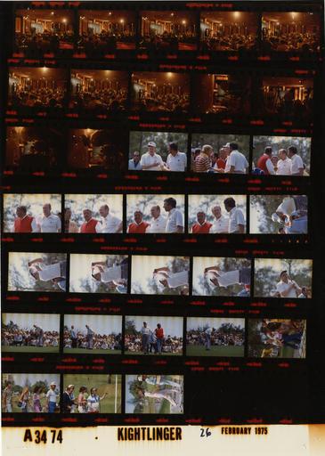 | Keywords: Ford A3474 NLGRF photo contact sheet (1975-02-26)(Gerald Ford Library).jpg White House Photographic Office WHPO is housed at the Gerald R Ford Presidential Library a branch of the National Archives and Records Administration NARA <br/><br/> This file is a 200 dpi photo contact sheet having images from roll of film A3474 of the August 9 1974 - January 20 1977 Gerald R Ford White House Photographic Office Series A0001-A9999 and B0001-B2886 photographs <br/><br/> The date on the photo contact sheet is the date the roll of film was processed not necessarily the date the photographs were taken See table below for additional details 1975-02-26 Gerald R Ford Presidential Library Image http //www fordlibrarymuseum gov/library/whphotos/A3474_NLGRF jpg A3474_NLGRF jpg from http //www fordlibrarymuseum gov/library/whphotos/19750226whpo pdf White House Photographs February 26 1975 of the http //www fordlibrarymuseum gov/Library/whphotos/whpo asp White House Photographic Collection page White House Photographic Office WHPO - Kightlinger PD-USGov Institution Institution Gerald R Ford Presidential Library Table wikitable sortable + Photo contact sheet A3474 U S President Ford Administration Gerald R Ford Library Frame s Tone Subject proper Subject generic Names Geographic Location Photographer Date - 2-13 Color Trip to Florida - Press Conference - Fort Lauderdale Florida GRF at podium; various angles and distances GRF Media Fort Lauderdale FL Diplomat Hotel - Convention Hall Kightlinger 1975-02-26 - 14-30 Color Trip to Florida - Jackie Gleason Inverrary Classic Celebrities Golf Tournament - Hollywood Florida golf activities; all not in every frame; GRF swinging club in six frames; Jack Nicklaus in frame 16 GRF Jackie Gleason Others; Jack Nicklaus Hollywood FL Inverrary Country Club Kightlinger 1975-02-26 - 31-34 Color Trip to Florida - Jackie Gleason Inverrary Classic Celebrities Golf Tournament - Hollywood Florida watching golfers not seen ; various angles and distances; all not in every frame Crowd Hollywood FL Inverrary Country Club Kightlinger 1975-02-26 Gerald R Ford Presidential Library and Museum-cooperation PD-USGov Contact sheets by the Ford White House February 1975 |