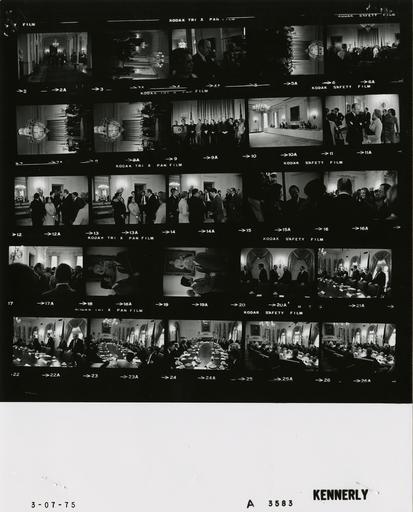 | Keywords: Ford A3583 NLGRF photo contact sheet (1975-03-07)(Gerald Ford Library).jpg White House Photographic Office WHPO is housed at the Gerald R Ford Presidential Library a branch of the National Archives and Records Administration NARA <br/><br/> This file is a 200 dpi photo contact sheet having images from roll of film A3583 of the August 9 1974 - January 20 1977 Gerald R Ford White House Photographic Office Series A0001-A9999 and B0001-B2886 photographs <br/><br/> The date on the photo contact sheet is the date the roll of film was processed not necessarily the date the photographs were taken See table below for additional details 1975-03-07 Gerald R Ford Presidential Library Image http //www fordlibrarymuseum gov/library/whphotos/A3583_NLGRF jpg A3583_NLGRF jpg from http //www fordlibrarymuseum gov/library/whphotos/19750307whpo pdf White House Photographs March 7 1975 of the http //www fordlibrarymuseum gov/Library/whphotos/whpo asp White House Photographic Collection page White House Photographic Office WHPO <br/> Creator David Hume Kennerly PD-USGov Institution Institution Gerald R Ford Presidential Library Table wikitable sortable + Photo contact sheet A3583 U S President Ford Administration Gerald R Ford Library Frame s Tone Subject proper Subject generic Names Geographic Location Photographer Date - 2A-4A BW Prior to Swearing in of Secretary of Transportation walking toward camera GRF Mr Mrs William T Coleman Jr Cross Hall Kennerly 1975-03-07 - 5A-9A BW Swearing in of Secretary of Transportation standing on stager; various angles; long shots from back of room GRF William Coleman Jr Lovida Coleman William Coleman III Lovida Hardin Coleman Hardin Coleman Laura Coleman; Thurgood Marshall; Rockefeller; Sens Scott Brooke Hartke Pearson; Rep Rhodes; Robert Weaver Richard Levy Others East Room Kennerly 1975-03-07 - 10A BW Prior to Reception Following Swearing in of Secretary of Transportation awaiting arrival of guests for reception; long shot Wait Staff State Dining Room Kennerly 1975-03-07 - 11A-17A BW Reception Following Swearing in of Secretary of Transportation standing talking; various angles and distances; all not in every frame GRF William Coleman Jr Lovida Coleman William Coleman III Lovida Hardin Coleman Hardin Coleman Laura Coleman; Thurgood Marshall; Rockefeller; Sens Scott Brooke Hartke Pearson; Rep Rhodes; Robert Weaver Richard Levy Others State Dining Room Kennerly 1975-03-07 - 18A-19A BW Prior to Meeting With Representatives of the Tanker Industry - Associate Director of the Domestic Council for Natural Resources; Secretary of Labor standing talking under Mamie Eisenhower portrait Raoul-Duval Brennan Outside Cabinet Room Kennerly 1975-03-07 - 20A-26A BW Meeting With Representatives of the Tanker Industry standing talking in 20A 22A; seated around table talking in 23A-27A'; various angles and distances; all not in every frame GRF Paul Hall Jesse Calhoon Shannon Wall Page Groton Robert Lowen Cabinet Room Kennerly 1975-03-07 Gerald R Ford Presidential Library and Museum-cooperation PD-USGov Contact sheets by the Ford White House March 1975 Photographs by David Hume Kennerly from 1975 |
