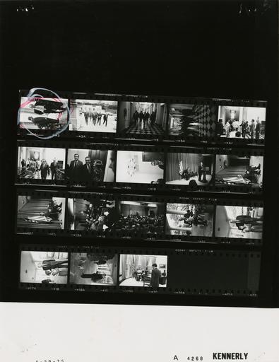 | Keywords: Ford A4268 NLGRF photo contact sheet (1975-04-29)(Gerald Ford Library).jpg White House Photographic Office WHPO is housed at the Gerald R Ford Presidential Library a branch of the National Archives and Records Administration NARA <br/><br/> This file is a 200 dpi photo contact sheet having images from roll of film A4268 of the August 9 1974 - January 20 1977 Gerald R Ford White House Photographic Office Series A0001-A9999 and B0001-B2886 photographs <br/><br/> The date on the photo contact sheet is the date the roll of film was processed not necessarily the date the photographs were taken See table below for additional details 1975-04-29 Gerald R Ford Presidential Library Image http //www fordlibrarymuseum gov/library/whphotos/A4268_NLGRF jpg A4268_NLGRF jpg from http //www fordlibrarymuseum gov/library/whphotos/19750429whpo pdf White House Photographs April 29 1975 of the http //www fordlibrarymuseum gov/Library/whphotos/whpo asp White House Photographic Collection page White House Photographic Office WHPO <br/> Creator David Hume Kennerly PD-USGov Institution Institution Gerald R Ford Presidential Library Table wikitable sortable + Photo contact sheet A4268 U S President Ford Administration Gerald R Ford Library Frame s Tone Subject proper Subject generic Names Geographic Location Photographer Date - 2A BW Activity Regarding Evacuation of Saigon Vietnam Scowcroft walking out of room; serious expressions Kissinger Scowcroft Kissinger's West Wing Office Kennerly 1975-04-29 - 3A BW Prior to Press Conference Following Evacuation of Saigon Vietnam walking talking Kissinger Scowcroft Nessen Others Driveway Between White House and Old Executive Office Building OEOB Kennerly 1975-04-29 - 4A-9A BW Prior to Press Conference Following Evacuation of Saigon Vietnam walking talking greeting handshaking; all not in every frame Kissinger Scowcroft Nessen Others Old Executive Office Building OEOB Kennerly 1975-04-29 - 10A BW Press Conference Following Evacuation of Saigon Vietnam Nessen at podium Kissinger seated; taken from stage right Kissinger Nessen Old Executive Office Building OEOB -Room 450 Kennerly 1975-04-29 - 11A-12A BW Press Conference Following Evacuation of Saigon Vietnam seated; taken from stage right Kissinger Old Executive Office Building OEOB -Room 450 Kennerly 1975-04-29 - 13A-14A BW Press Conference Following Evacuation of Saigon Vietnam HAK at podium; Nessen seated in background; media in foreground; long shots taken from back of room Kissinger Nessen Media Old Executive Office Building OEOB -Room 450 Kennerly 1975-04-29 - 15A BW Golden Retriever GRF seated holding dog in lap GRF Puppy Colonnade Kennerly 1975-04-29 - 16A017A BW standing posing GRF Unidentified Girl Colonnade Kennerly 1975-04-29 - 18A BW Golden Retrievers GRF standing watching two dogs GRF Puppies Colonnade Kennerly 1975-04-29 - 10A BW GRF at desk looking in briefcase in background; O'Donnell walking in foreground GRF O'Donnell Oval Office Kennerly 1975-04-29 Gerald R Ford Presidential Library and Museum-cooperation PD-USGov Contact sheets by the Ford White House April 1975 Photographs by David Hume Kennerly from 1975 |