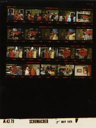 | Keywords: Ford A4379 NLGRF photo contact sheet (1975-05-05)(Gerald Ford Library).jpg White House Photographic Office WHPO is housed at the Gerald R Ford Presidential Library a branch of the National Archives and Records Administration NARA <br/><br/> This file is a 200 dpi photo contact sheet having images from roll of film A4379 of the August 9 1974 - January 20 1977 Gerald R Ford White House Photographic Office Series A0001-A9999 and B0001-B2886 photographs <br/><br/> The date on the photo contact sheet is the date the roll of film was processed not necessarily the date the photographs were taken See table below for additional details 1975-05-05 Gerald R Ford Presidential Library Image http //www fordlibrarymuseum gov/library/whphotos/A4379_NLGRF jpg A4379_NLGRF jpg from http //www fordlibrarymuseum gov/library/whphotos/19750505whpo pdf White House Photographs May 5 1975 of the http //www fordlibrarymuseum gov/Library/whphotos/whpo asp White House Photographic Collection page White House Photographic Office WHPO - Schumacher PD-USGov Institution Institution Gerald R Ford Presidential Library Table wikitable sortable + Photo contact sheet A4379 U S President Ford Administration Gerald R Ford Library Frame s Tone Subject proper Subject generic Names Geographic Location Photographer Date - 2A-5A Color Reception Prior to Senate Ladies Red Cross Luncheon greeting handshaking standing talking; all not in every frame Betty Ford U S Senate Wives Green Room Schumacher 1975-05-05 - 6A-17A Color Reception Prior to Senate Ladies Red Cross Luncheon greeting handshaking standing talking; all not in every frame Betty Ford U S Senate Wives Blue Room Schumacher 1975-05-05 - 18A Color Prior to Senate Ladies Red CrossLuncheon walking talking Betty Ford Howe Cross Hall Schumacher 1975-05-05 - 19A-21A Color Senate Ladies Red CrossLuncheon seated around tables; talking; all not in every frame Betty Ford U S Senate Wives State Dining Room Schumacher 1975-05-05 Gerald R Ford Presidential Library and Museum-cooperation PD-USGov Contact sheets by the Ford White House May 1975 |