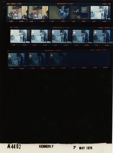 | Keywords: Ford A4402 NLGRF photo contact sheet (1975-05-07)(Gerald Ford Library).jpg White House Photographic Office WHPO is housed at the Gerald R Ford Presidential Library a branch of the National Archives and Records Administration NARA <br/><br/> This file is a 200 dpi photo contact sheet having images from roll of film A4402 of the August 9 1974 - January 20 1977 Gerald R Ford White House Photographic Office Series A0001-A9999 and B0001-B2886 photographs <br/><br/> The date on the photo contact sheet is the date the roll of film was processed not necessarily the date the photographs were taken See table below for additional details 1975-05-07 Gerald R Ford Presidential Library Image http //www fordlibrarymuseum gov/library/whphotos/A4402_NLGRF jpg A4402_NLGRF jpg from http //www fordlibrarymuseum gov/library/whphotos/19750507whpo pdf White House Photographs May 7 1975 of the http //www fordlibrarymuseum gov/Library/whphotos/whpo asp White House Photographic Collection page White House Photographic Office WHPO <br/> Creator David Hume Kennerly PD-USGov Institution Institution Gerald R Ford Presidential Library Table wikitable sortable + Photo contact sheet A4402 U S President Ford Administration Gerald R Ford Library Frame s Tone Subject proper Subject generic Names Geographic Location Photographer Date - 2A-3A Color looking at photographic slides; Susan wearing bandana Betty Ford Susan Ford Second Floor - West Sitting Hall Kennerly 1975-05-07 - 4A Color landscape painting on floor Second Floor - West Sitting Hall Kennerly 1975-05-07 - 5A-14 Color Artist posing with painted portrait s of Susan Susan Ford John Ulbricht Second Floor - West Sitting Hall Kennerly 1975-05-07 Gerald R Ford Presidential Library and Museum-cooperation PD-USGov Contact sheets by the Ford White House May 1975 Photographs by David Hume Kennerly from 1975 |