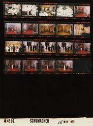 | Keywords: Ford A4587 NLGRF photo contact sheet (1975-05-15)(Gerald Ford Library).jpg White House Photographic Office WHPO is housed at the Gerald R Ford Presidential Library a branch of the National Archives and Records Administration NARA <br/><br/> This file is a 200 dpi photo contact sheet having images from roll of film A4587 of the August 9 1974 - January 20 1977 Gerald R Ford White House Photographic Office Series A0001-A9999 and B0001-B2886 photographs <br/><br/> The date on the photo contact sheet is the date the roll of film was processed not necessarily the date the photographs were taken See table below for additional details 1975-05-15 Gerald R Ford Presidential Library Image http //www fordlibrarymuseum gov/library/whphotos/A4587_NLGRF jpg A4587_NLGRF jpg from http //www fordlibrarymuseum gov/library/whphotos/19750515whpo pdf White House Photographs May 15 1975 of the http //www fordlibrarymuseum gov/Library/whphotos/whpo asp White House Photographic Collection page White House Photographic Office WHPO - Schumacher PD-USGov Institution Institution Gerald R Ford Presidential Library Table wikitable sortable + Photo contact sheet A4587 U S President Ford Administration Gerald R Ford Library Frame s Tone Subject proper Subject generic Names Geographic Location Photographer Date - 2A-5A Color Preparations for State Dinner for the Shah of Iran Table settings State Dining Room Schumacher 1975-05-15 - 6A-8A Color Preparations for State Dinner for the Shah of Iran Cross Hall Schumacher 1975-05-15 - 9A-10A Color Preparations for State Dinner for the Shah of Iran East Room Schumacher 1975-05-15 - 11A-12A Color Reception Prior to State Dinner for the Shah of Iran greeting handshaking; all not in every frame; formal wear GRF Betty Ford Shah Mohammad Reza Pahlavi Shahbanou Farah Pahlavi Others Second Floor - Yellow Oval Room Schumacher 1975-05-15 - 13A-15A Color State Dinner for the Shah of Iran standing talking; formal wear GRF Betty Ford Shah Mohammad Reza Pahlavi Shahbanou Farah Pahlavi East Room Schumacher 1975-05-15 - 16A-17A Color State Dinner for the Shah of Iran walking toward State Dining Room; formal wear GRF Shahbanou Farah Pahlavi Cross Hall Schumacher 1975-05-15 - 18A-20A Color State Dinner for the Shah of Iran walking toward State Dining Room; formal wear Betty Ford Shah Mohammad Reza Pahlavi Cross Hall Schumacher 1975-05-15 Gerald R Ford Presidential Library and Museum-cooperation PD-USGov Contact sheets by the Ford White House May 1975 |