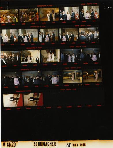 | Keywords: Ford A4620 NLGRF photo contact sheet (1975-05-16)(Gerald Ford Library).jpg White House Photographic Office WHPO is housed at the Gerald R Ford Presidential Library a branch of the National Archives and Records Administration NARA <br/><br/> This file is a 200 dpi photo contact sheet having images from roll of film A4620 of the August 9 1974 - January 20 1977 Gerald R Ford White House Photographic Office Series A0001-A9999 and B0001-B2886 photographs <br/><br/> The date on the photo contact sheet is the date the roll of film was processed not necessarily the date the photographs were taken See table below for additional details 1975-05-16 Gerald R Ford Presidential Library Image http //www fordlibrarymuseum gov/library/whphotos/A4620_NLGRF jpg A4620_NLGRF jpg from http //www fordlibrarymuseum gov/library/whphotos/19750516whpo pdf White House Photographs May 16 1975 of the http //www fordlibrarymuseum gov/Library/whphotos/whpo asp White House Photographic Collection page White House Photographic Office WHPO - Schumacher PD-USGov Institution Institution Gerald R Ford Presidential Library Table wikitable sortable + Photo contact sheet A4620 U S President Ford Administration Gerald R Ford Library Frame s Tone Subject proper Subject generic Names Geographic Location Photographer Date - 3-4 Color Entertainment Portion of the Reciprocal State Dinner Hosted by the Shah of Iran women in ethnic costume dancing Entertainers Washington DC Tent on Iranian Embassy Grounds Schumacher 1975-05-16 - 5 Color Entertainment and Dancing Portion of the Reciprocal State Dinner Hosted by the Shah of Iran dancing; formal wear GRF Shahbanou Farah Pahlavi Washington DC Iranian Embassy Schumacher 1975-05-16 - 6-11 Color Entertainment and Dancing Portion of the Reciprocal State Dinner Hosted by the Shah of Iran standing talking; only BF and Kennedy in all frames; formal wear GRF Betty Ford Sen Kennedy Shah Mohammad Reza Pahlavi Washington DC Iranian Embassy Schumacher 1975-05-16 - 12-13 Color Entertainment and Dancing Portion of the Reciprocal State Dinner Hosted by the Shah of Iran walking down steps; formal wear Betty Ford Shahbanou Farah Pahlavi Washington DC Iranian Embassy Schumacher 1975-05-16 - 14-18 Color Prior to Departure from the Reciprocal State Dinner Hosted by the Shah of Iran talking handshaking saying goodbye; all not in every frame; formal wear GRF Betty Ford Shah Mohammad Reza Pahlavi Shahbanou Farah Pahlavi Washington DC Iranian Embassy Schumacher 1975-05-16 - 19-20 Color Return Following Reciprocal State Dinner Hosted by the Shah of Iran walking; GRF partially obscured in first frame; formal wear GRF Betty Ford Diplomatic Reception Room Schumacher 1975-05-16 - 21-22 Color standing posing; formal wear Unidentified Man Ground Floor Corridor Schumacher 1975-05-16 Gerald R Ford Presidential Library and Museum-cooperation PD-USGov Contact sheets by the Ford White House May 1975 |
